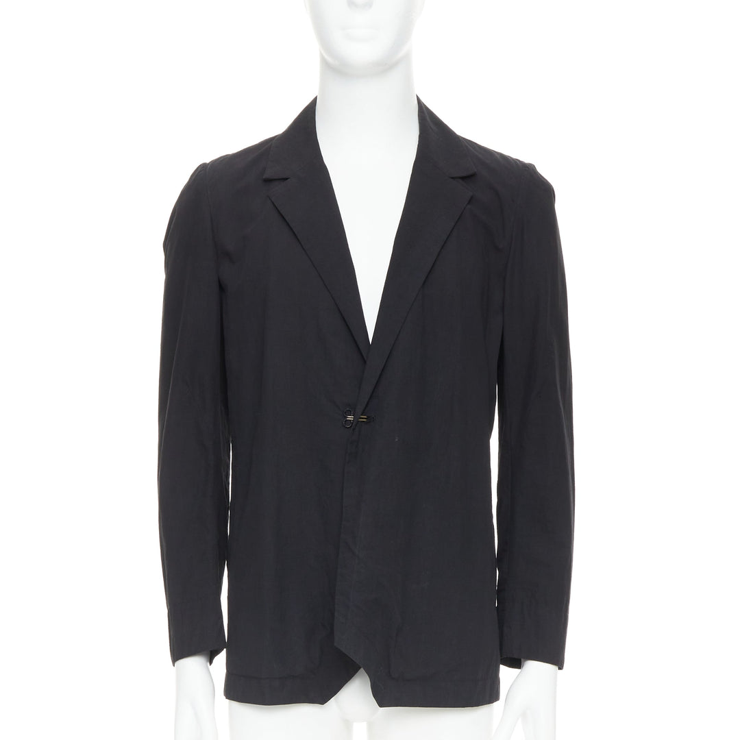 ATTACHMENT Kazuyuki Kumagai black cotton angular hem relaxed blazer JP3 L