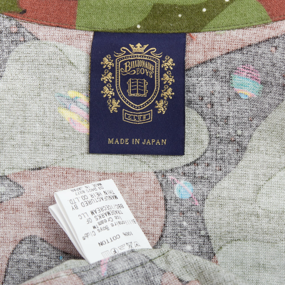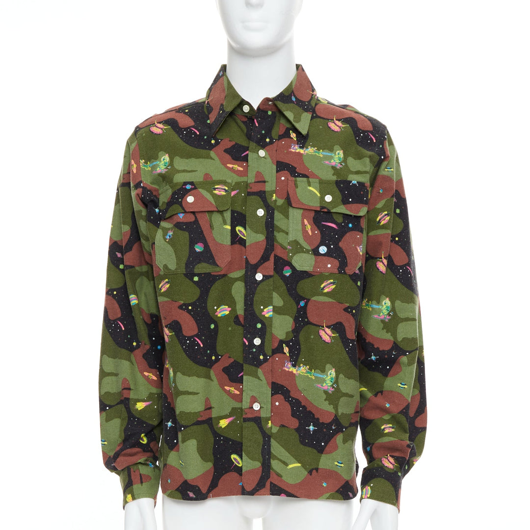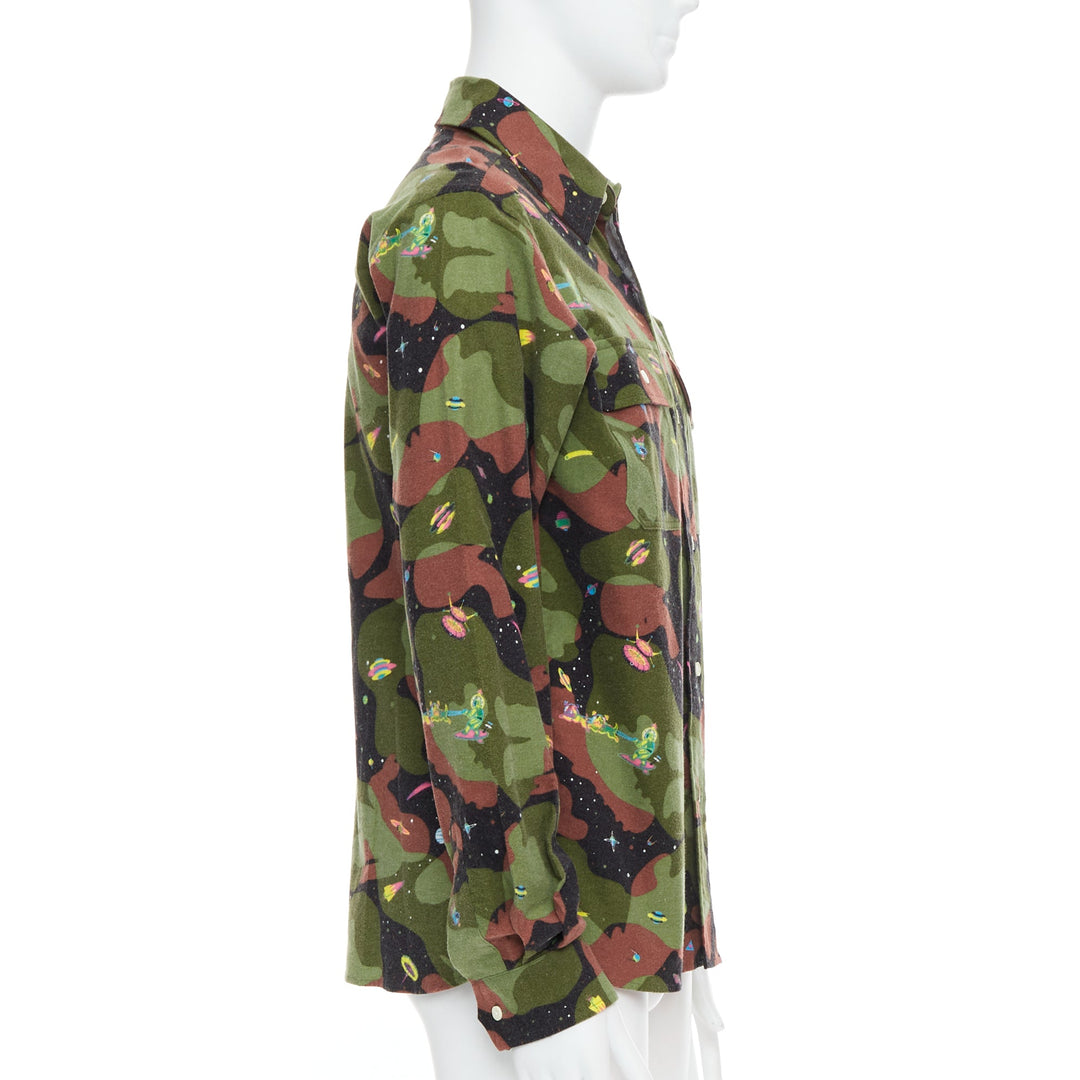 BILLIONAIRE BOYS CLUB green brown cotton camo UFO print shirt M