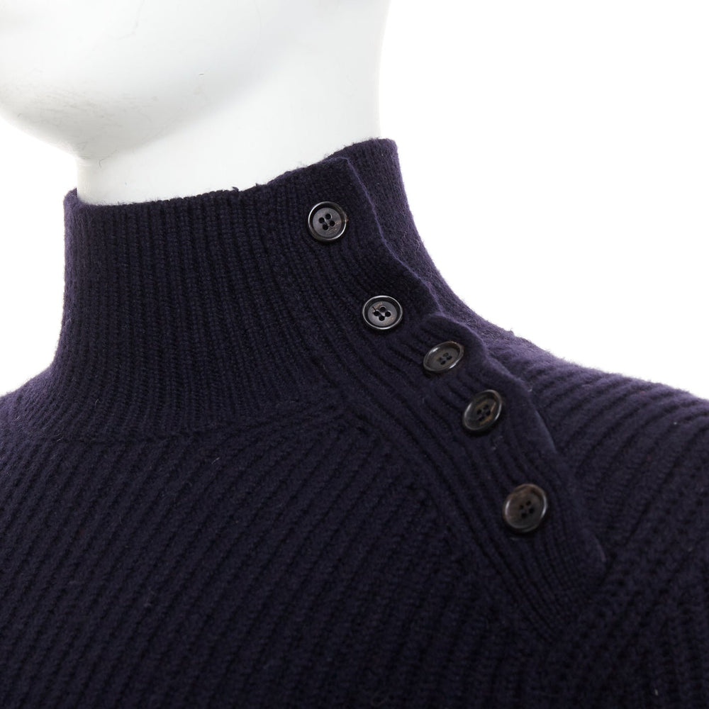 BRIONI 100% cashmere navy leather trim side button sweater IT48 M