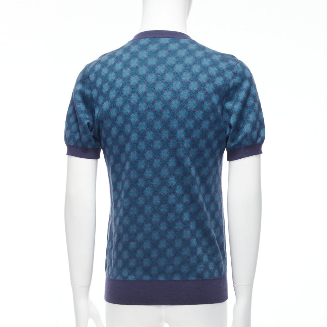 BRIONI silk cashmere blue navy diagonal check short sleeve sweater IT50 L