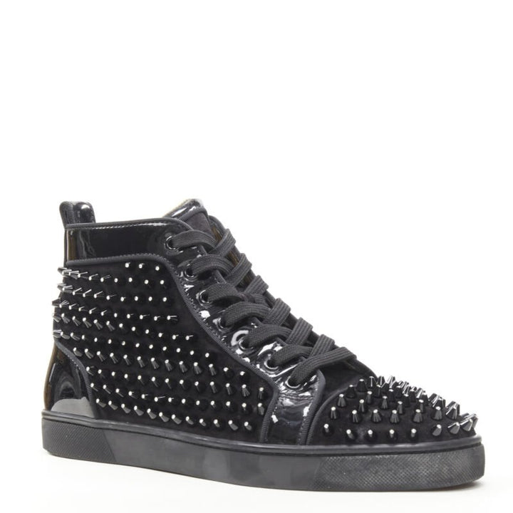 CHRISTIAN LOUBOUTIN Louis black velvet crystal spike stud high top sneaker EU41
