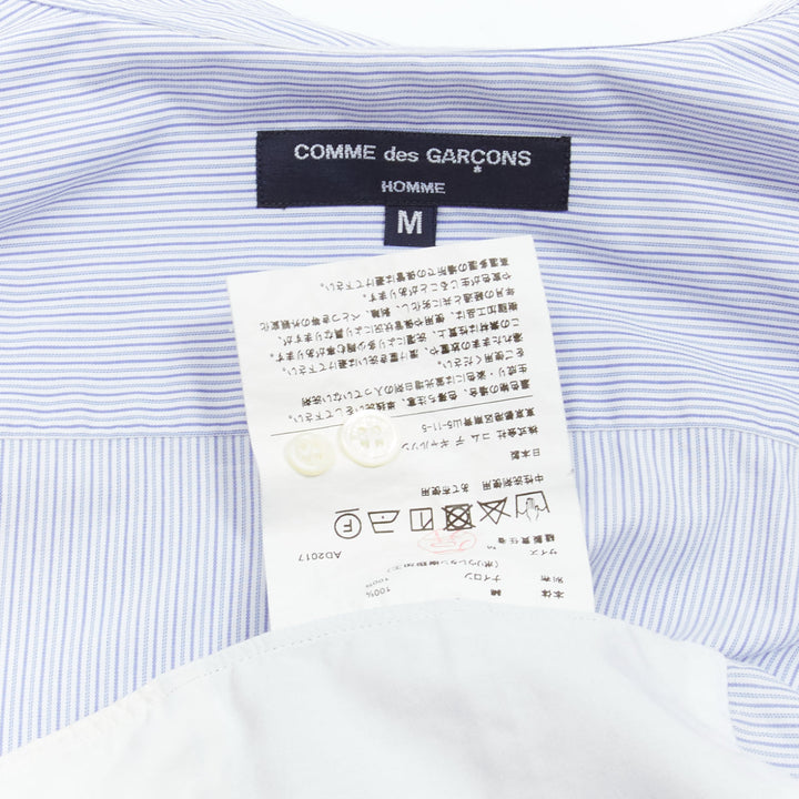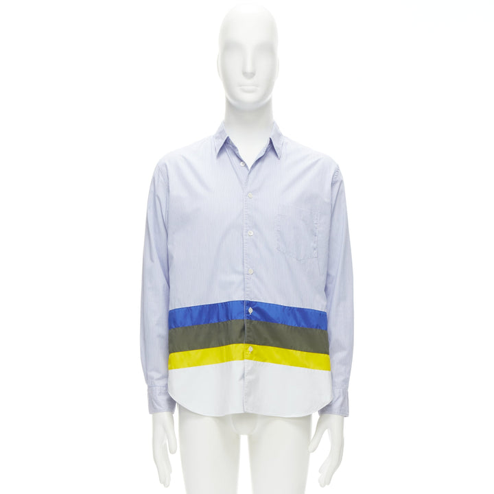 COMME DES GARCONS HOMME 2017 nylon patchwork hem blue pinstriped cotton shirt M