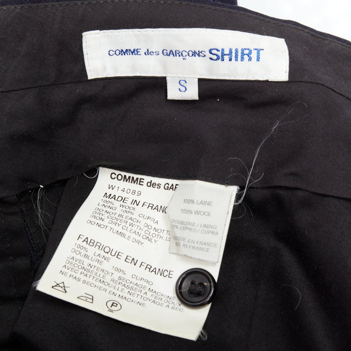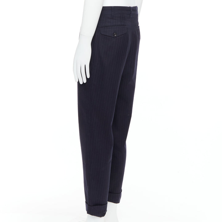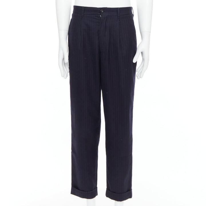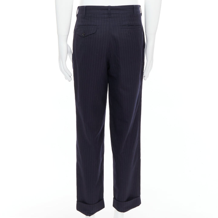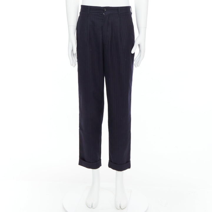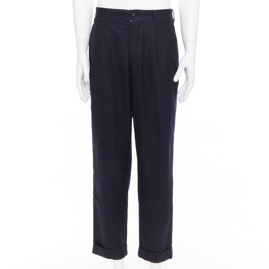 COMME DES GARCONS SHIRT navy 100% wool pinstripe tapered pants S