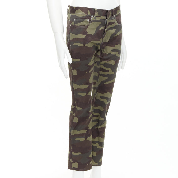 DIOR HOMME green Army Camouflage skinny denim cropped jeans 30"