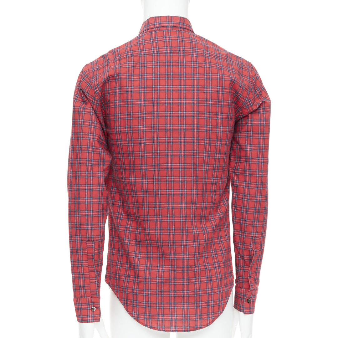 DIOR HOMME Hedi Slimane 2006 red plaid cotton slim fit shirt EU37 XS