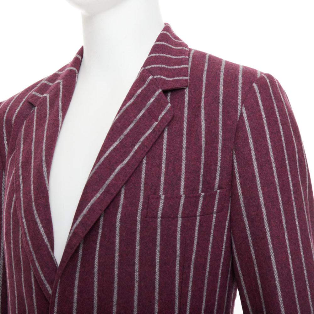 DOLCE GABBANA burgundy grey wool striped flap pocket blazer IT50 L