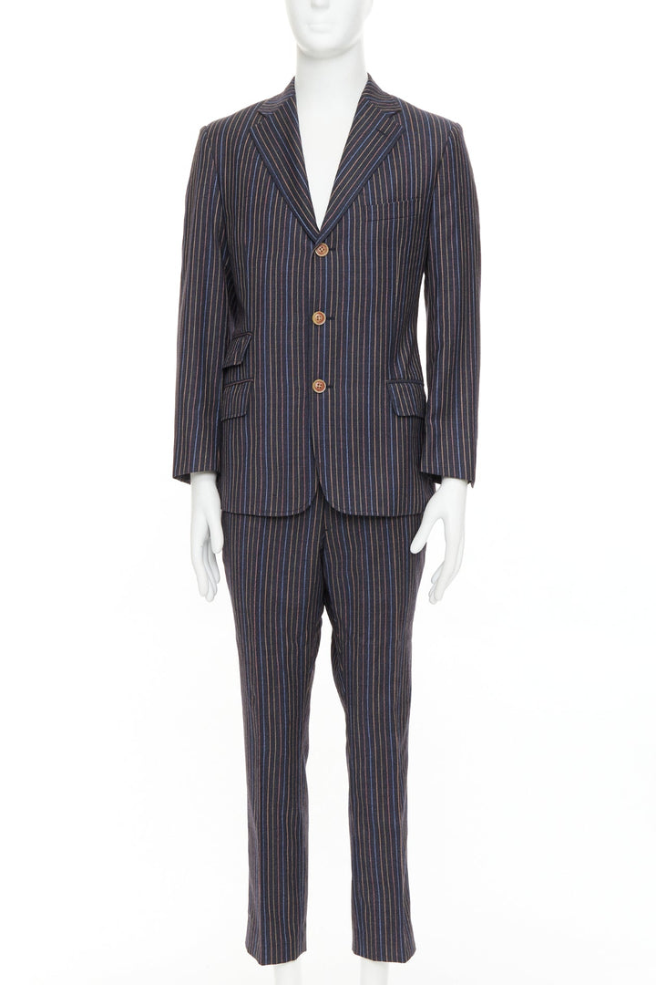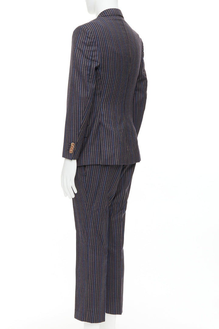 ETRO grey brown multi pinstripe single breasted cropped blazer pants set IT52 XL