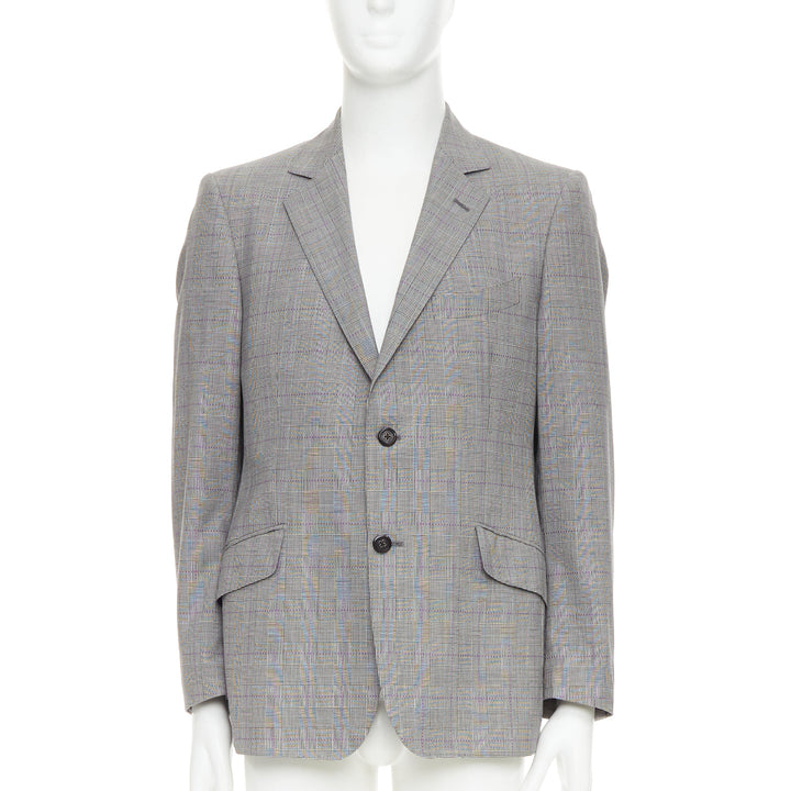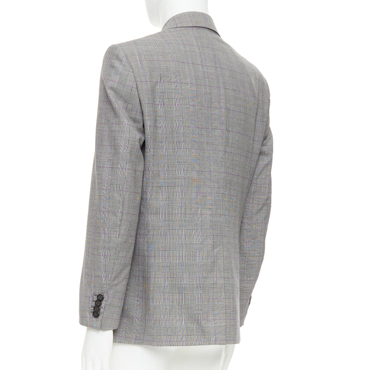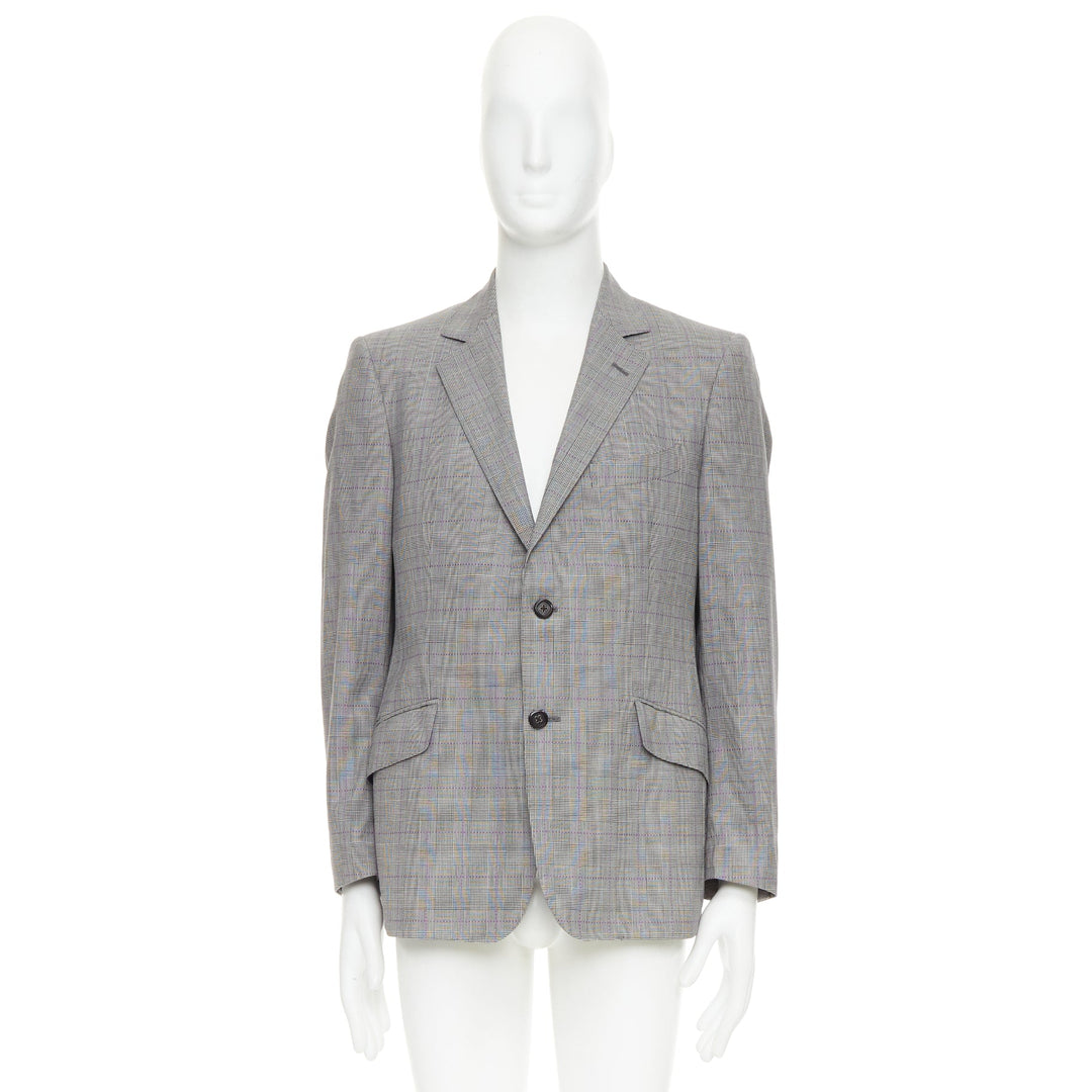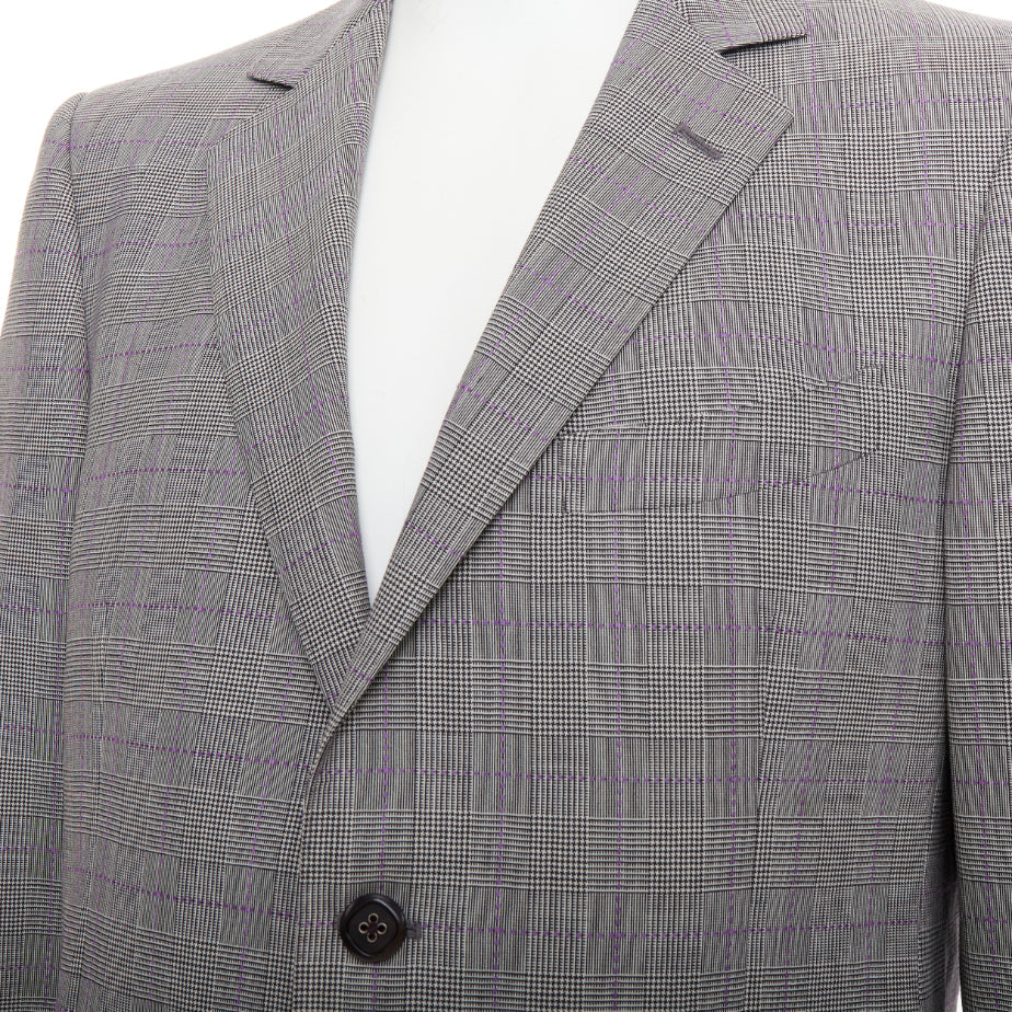 ETRO grey purple houndstooth single breasted flap pocket blazer IT52 XL