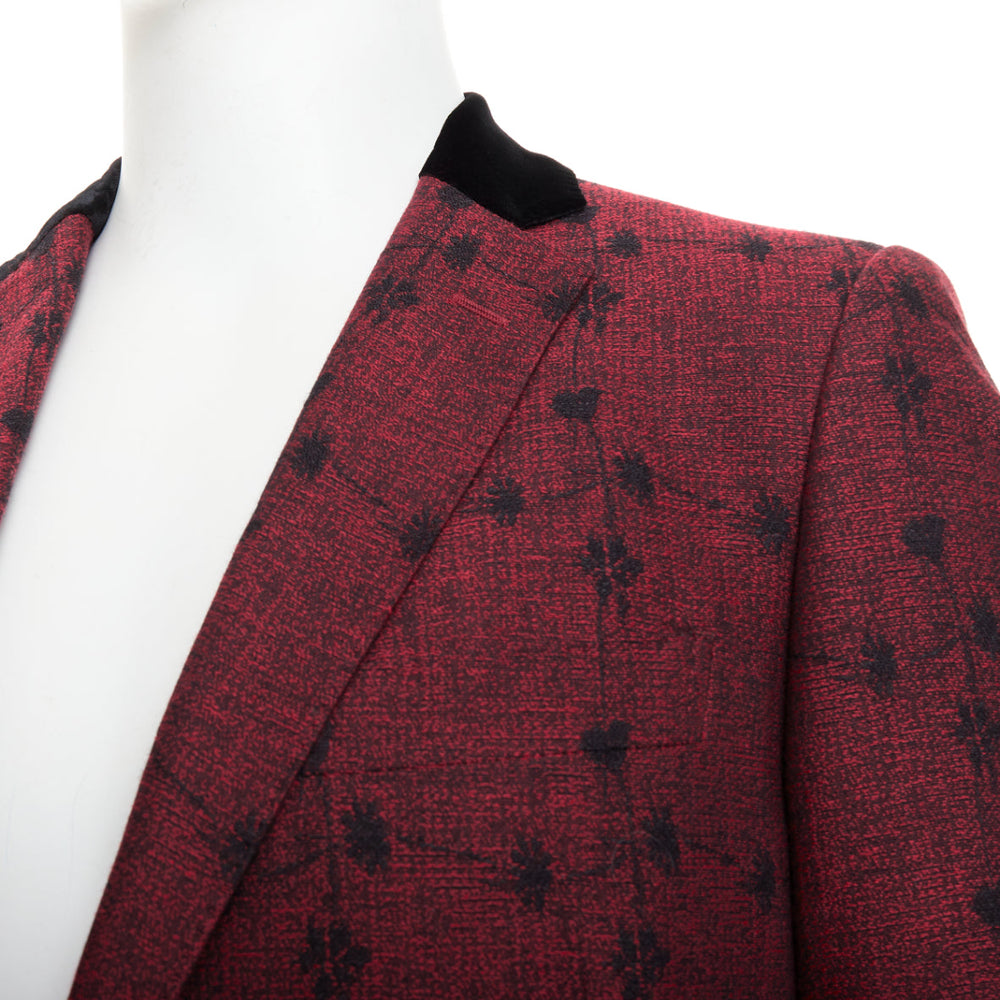 ETRO wine red velvet trim wool silk single breasted floral blazer IT52 XL