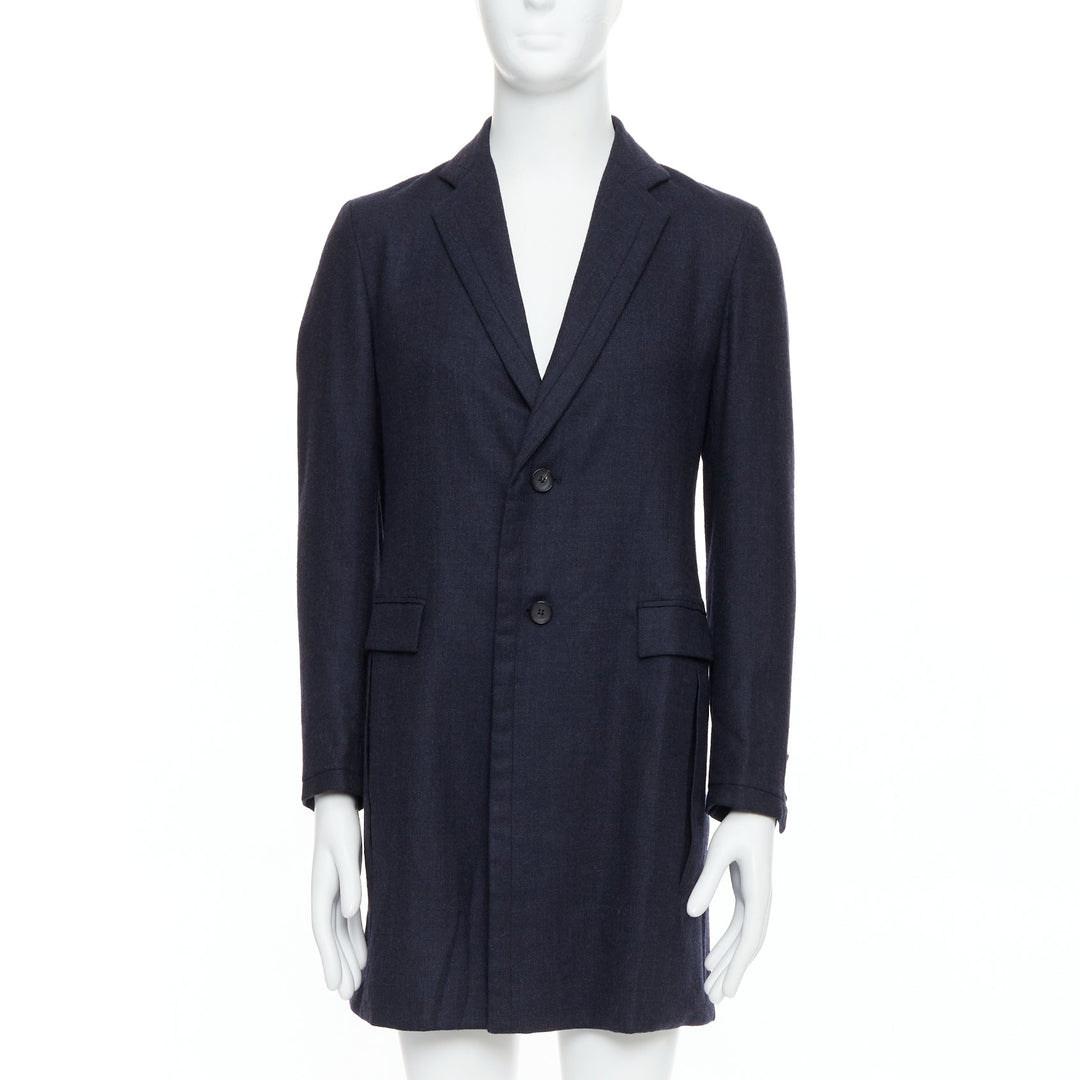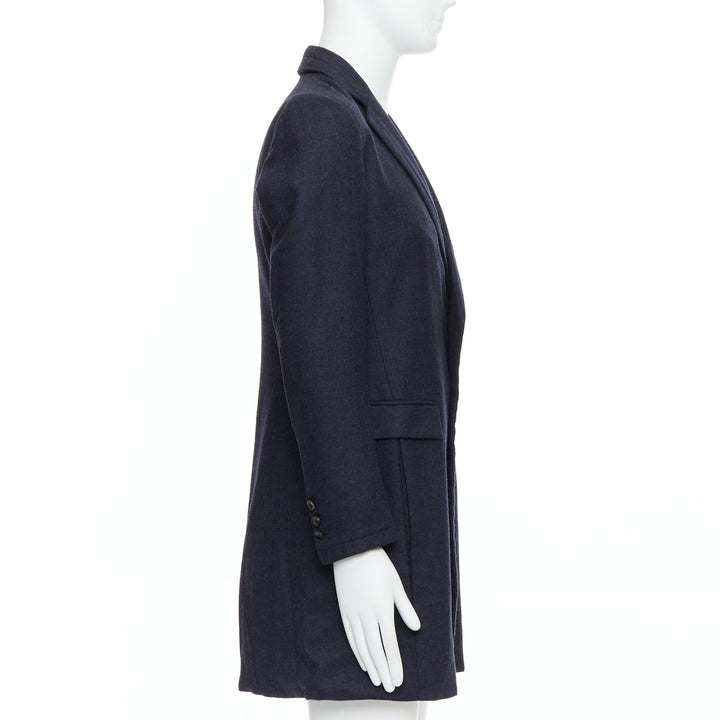 GIULIANO FUJIWARA 100% wool navy panelled lapel long coat IT46 S