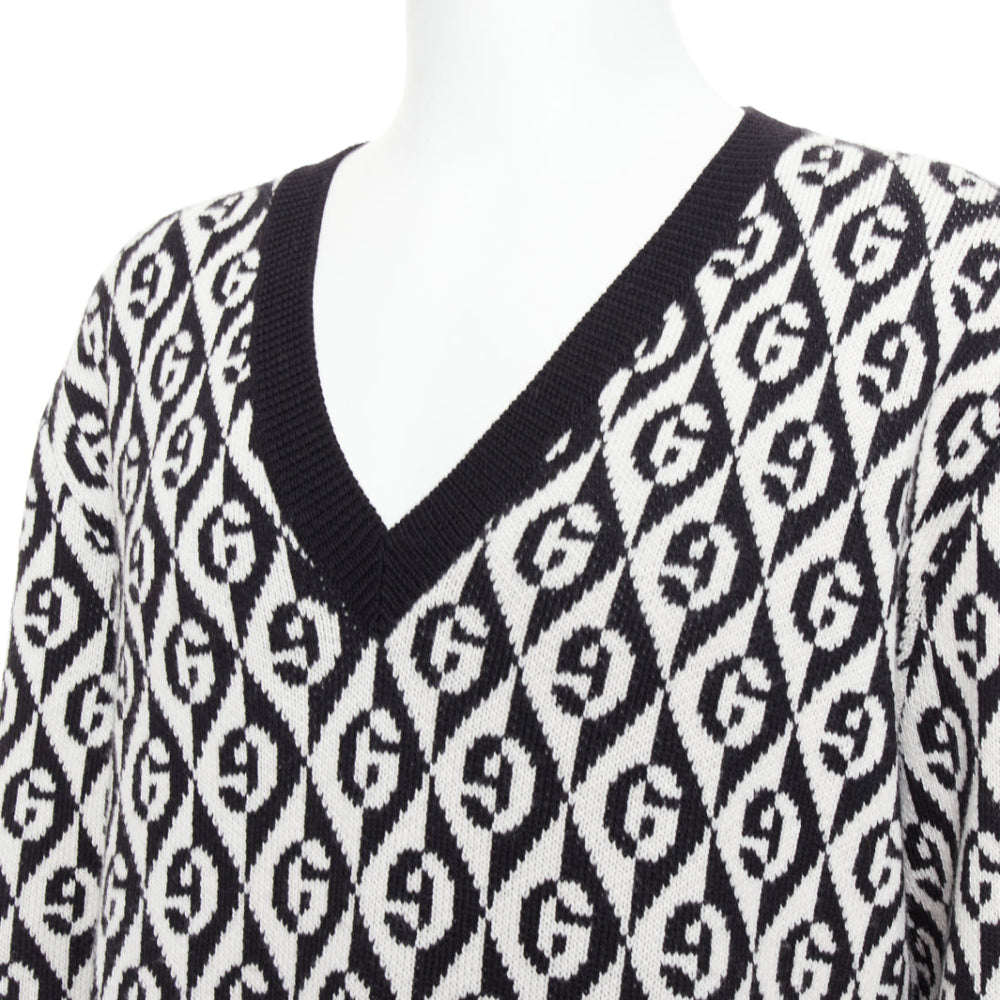 GUCCI 100% wool G Rhombus monogram black white intarsia sweater L