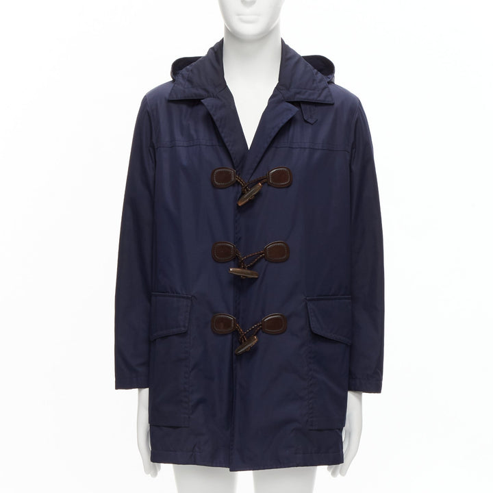GUCCI 2012 navy nylon brown toggle hooded anorak jacket coat IT48 M