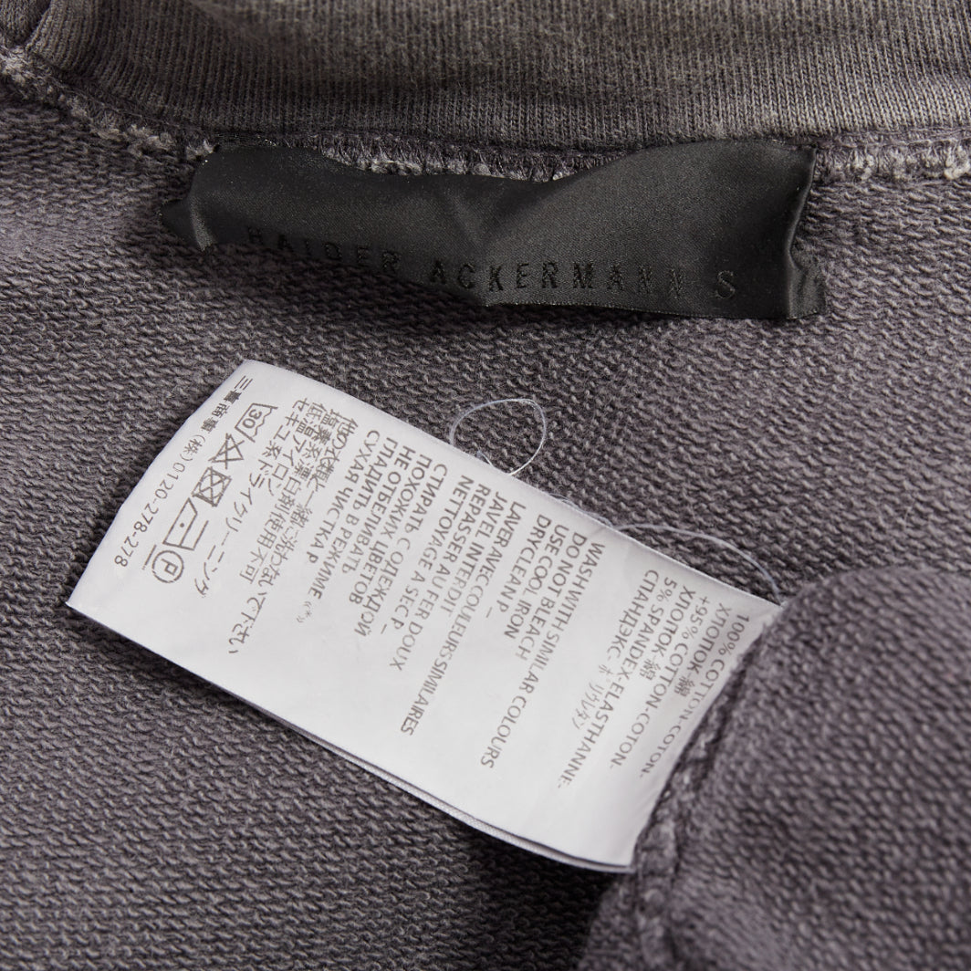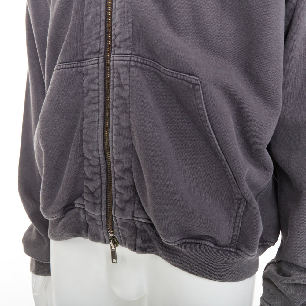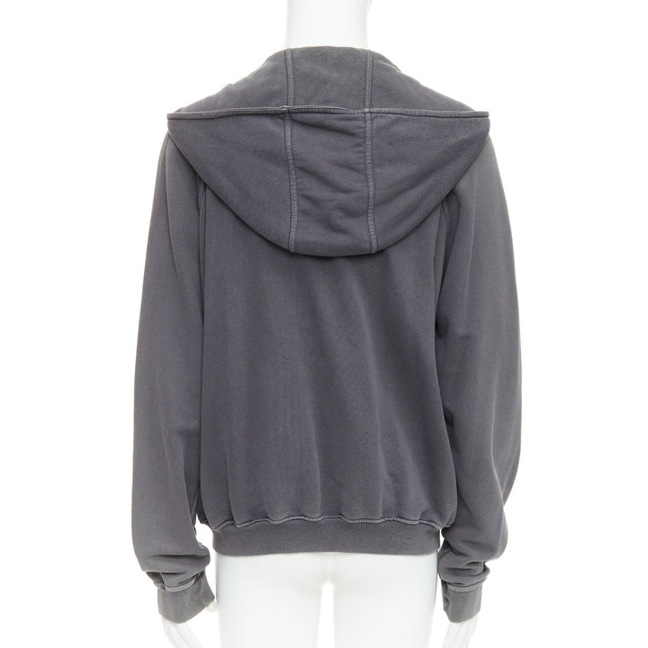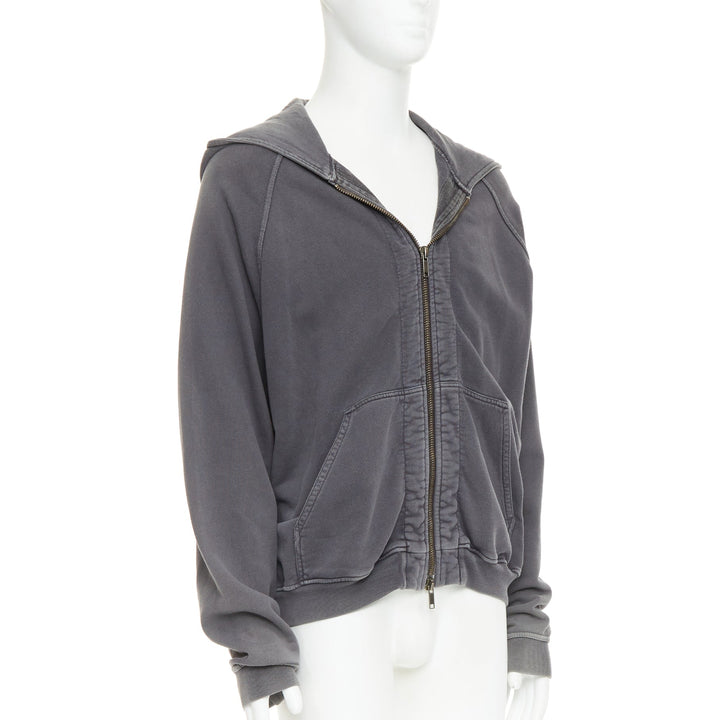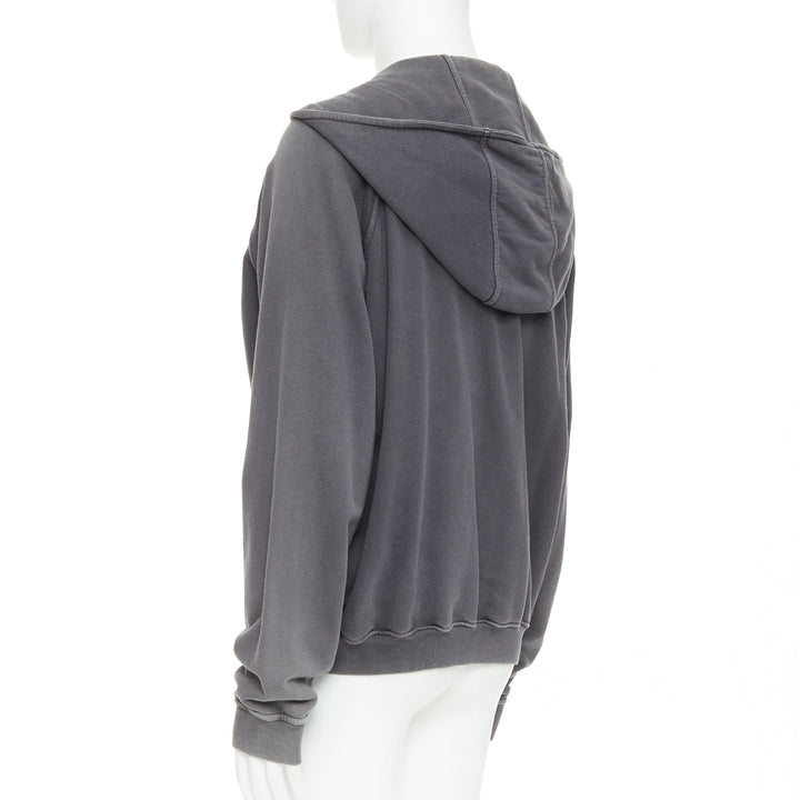 HAIDER ACKERMANN grey washed cotton raglan pocketed zip up hoodie top S