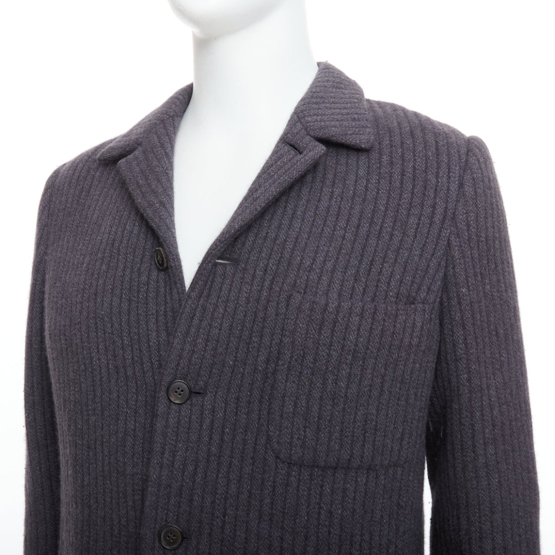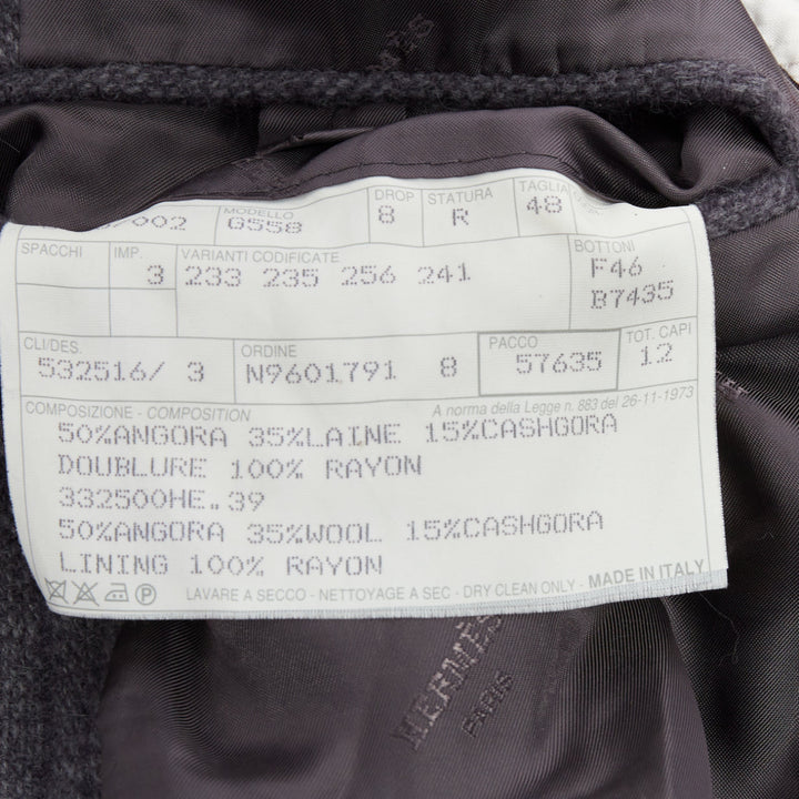 HERMES Angora wool cashgora grey verticle stripe knit blazer FR48 M