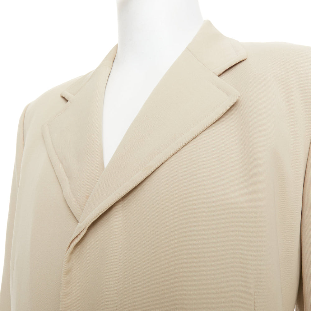 HERMES beige 100% wool twill horn buttons minimal long coat IT46 S