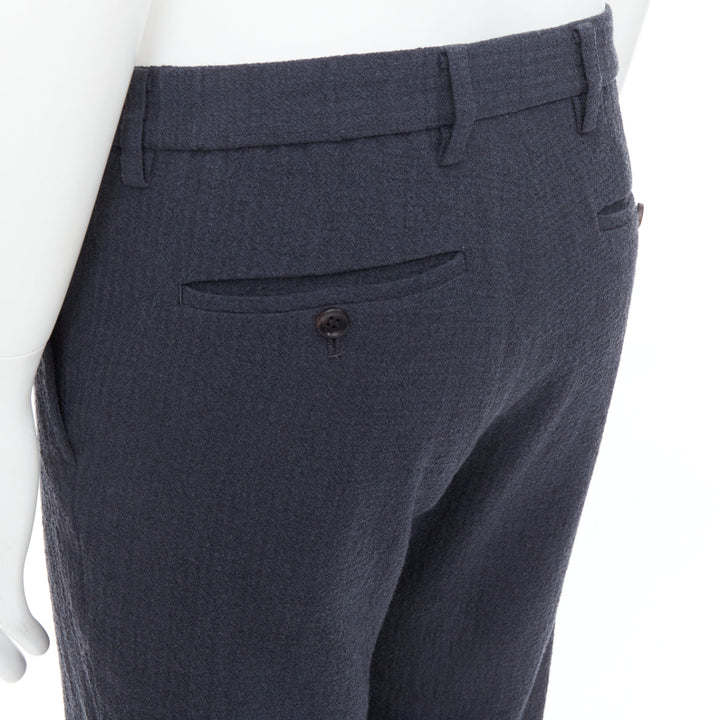 ISSEY MIYAKE MEN grey 100% wool textured cropped pants JP1 S