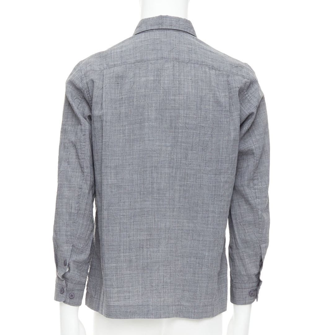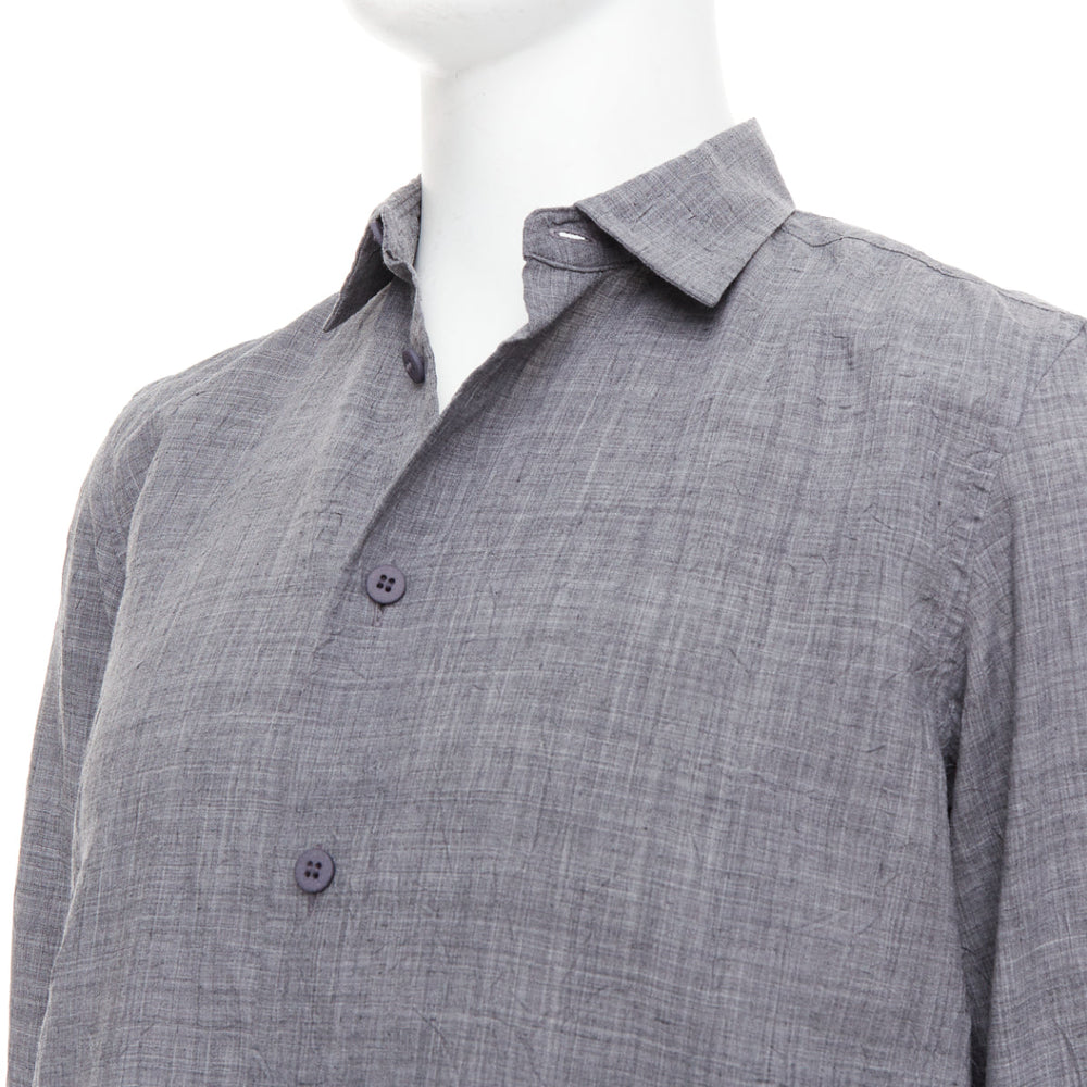 ISSEY MIYAKE MEN grey polyester ramie crinkled shirt top JP1 S