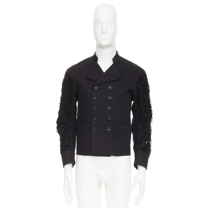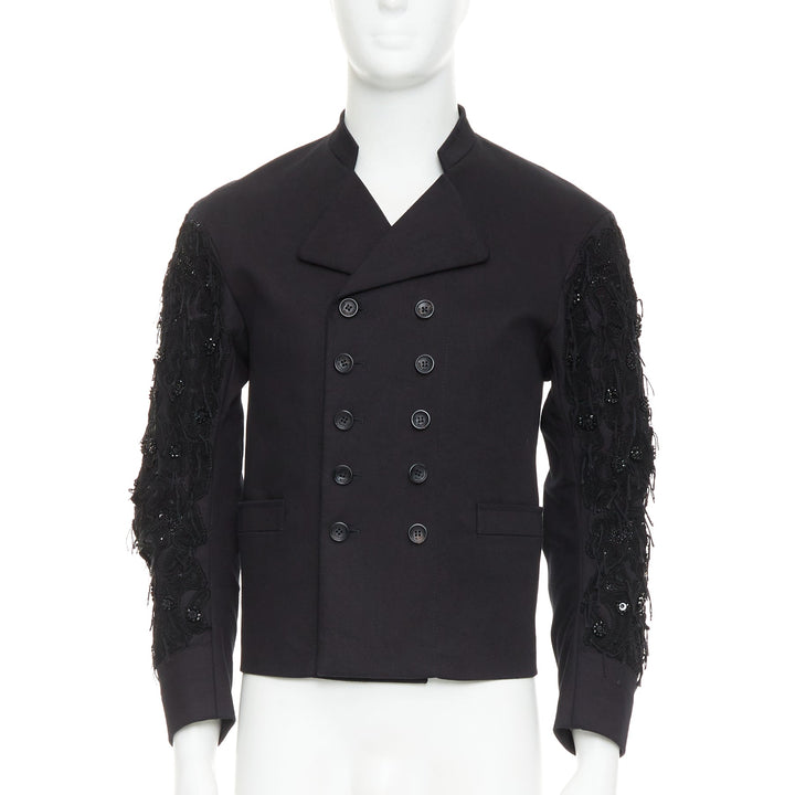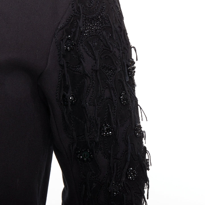 JOHN GALLIANO black fringe embellished sleeve double breasted jacket FR46 S