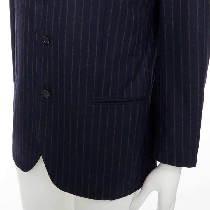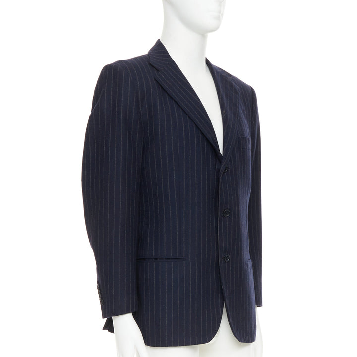 KITON 100% cashmere navy pinstriped double vents blazer jacket IT52 XL