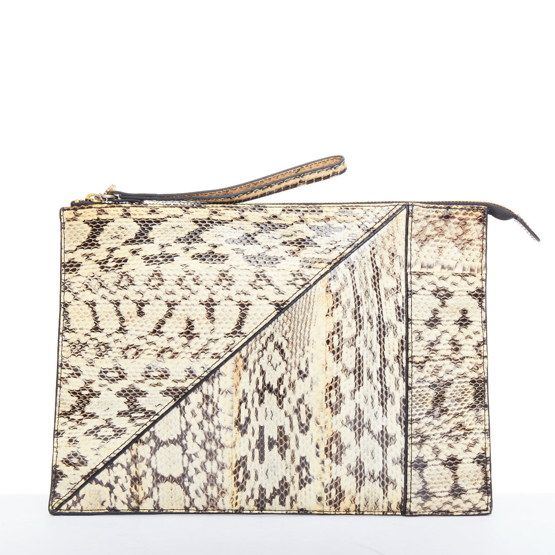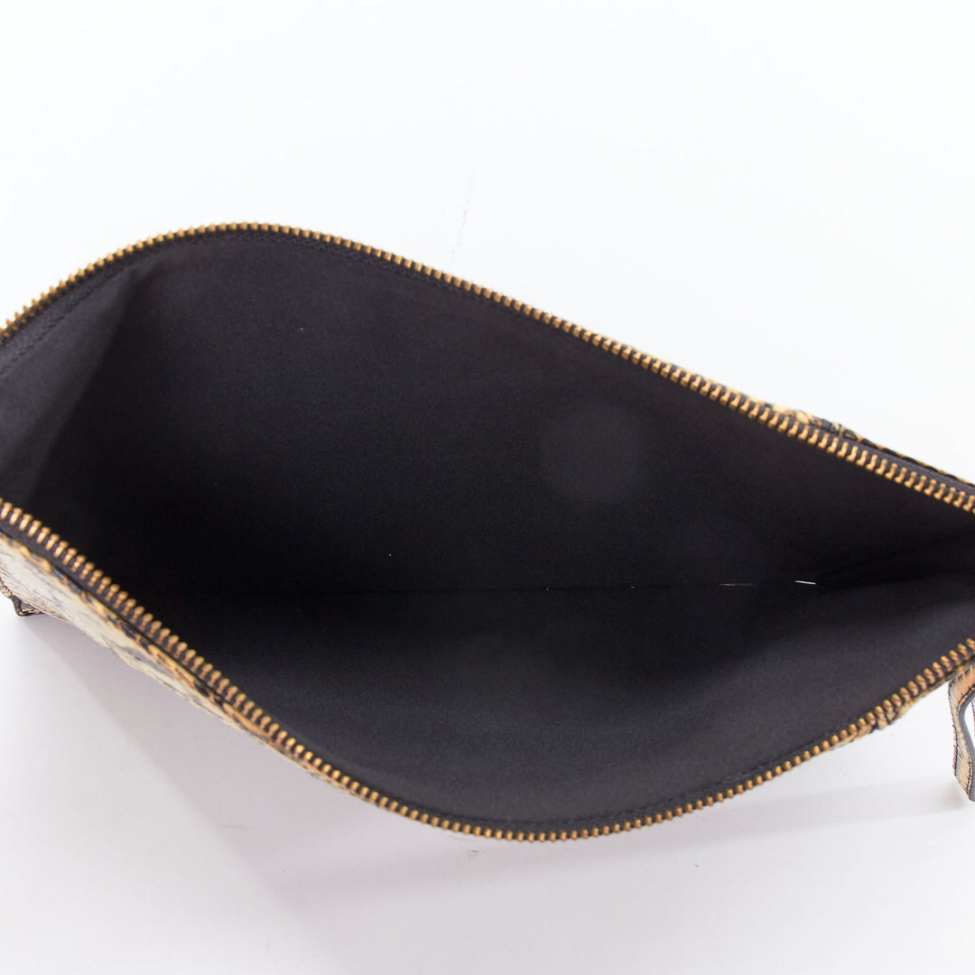 KOTUR cream black scaled leather gold zip charm pouch clutch bag