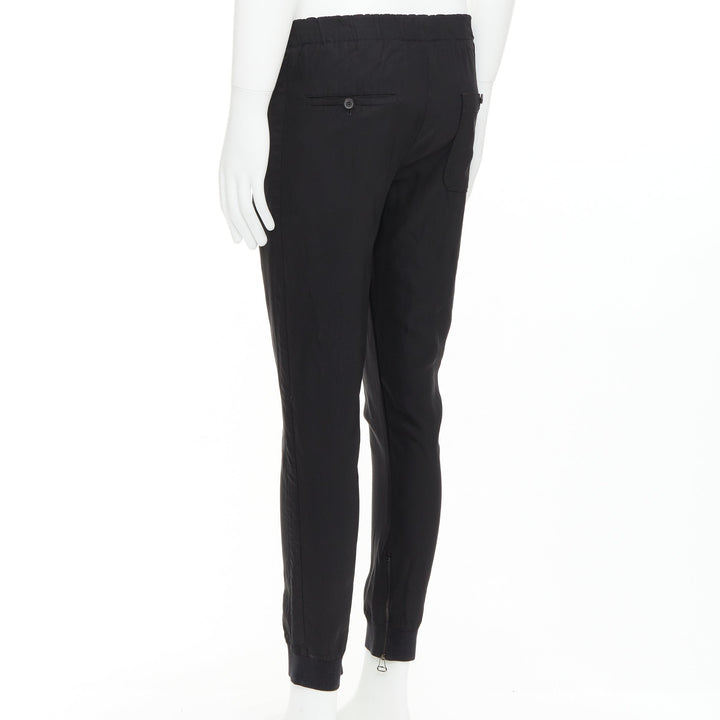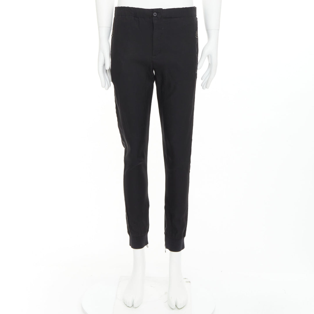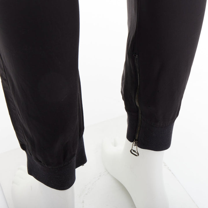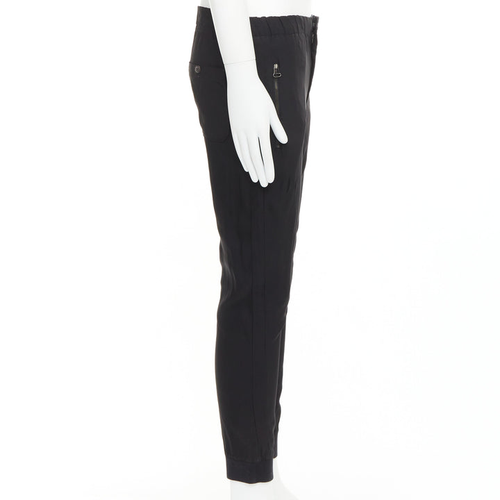 LANVIN black silver zip pocket mid waist tapered jogger pants FR46 S