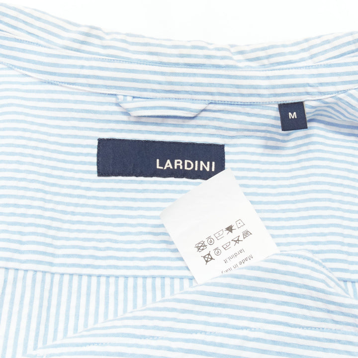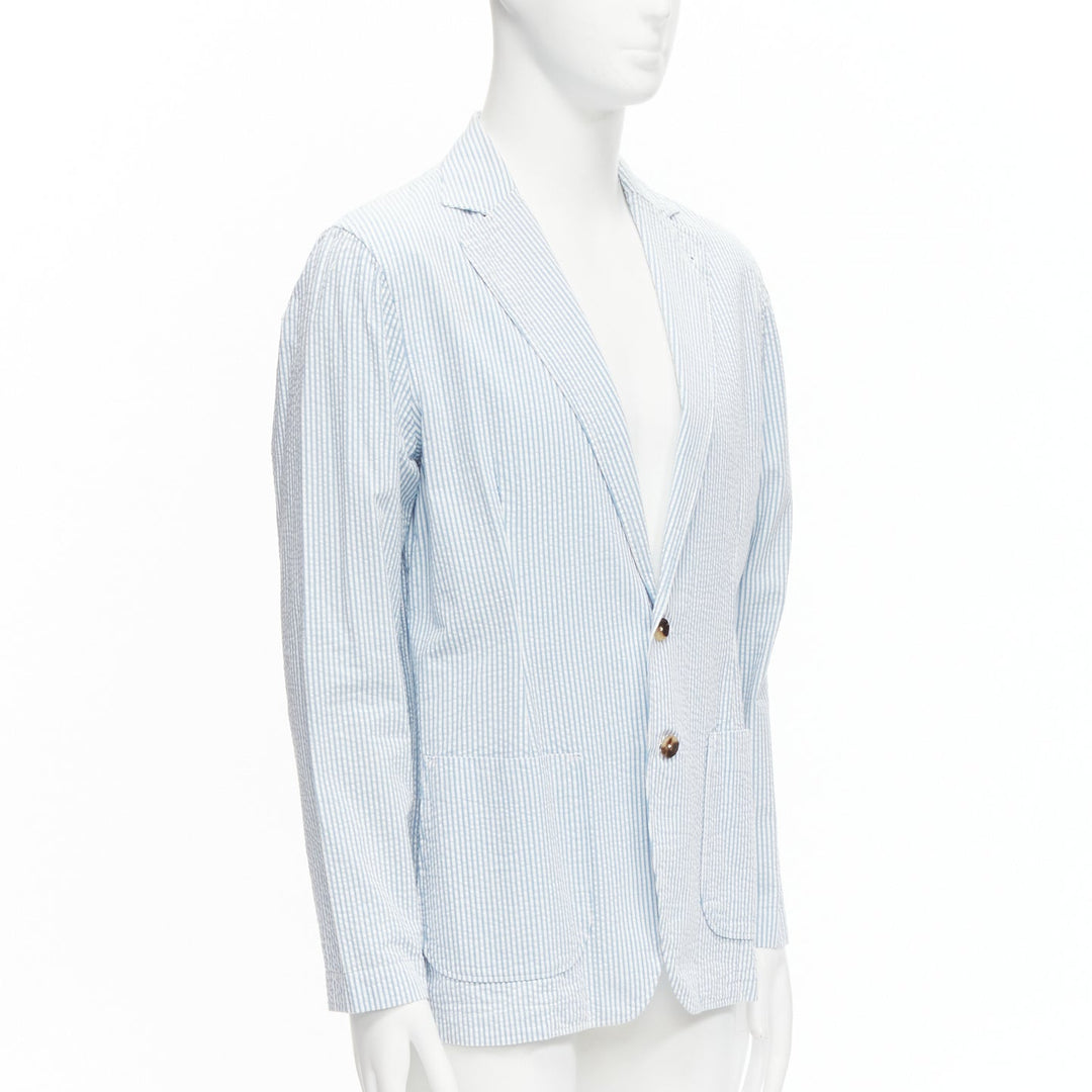 LARDINI blue white stripe seersucker brown shell 2 button blazer M