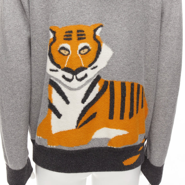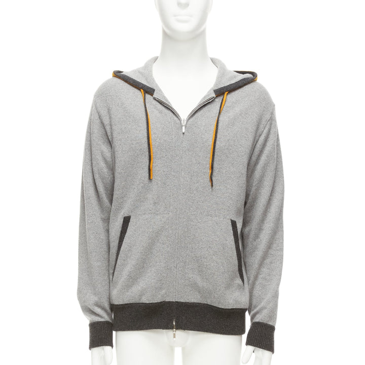 LORO PIANA 100% baby cashmere grey tiger print reversible hoodie zip up M
