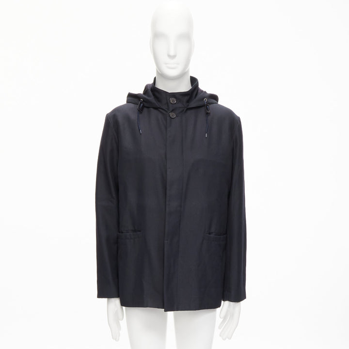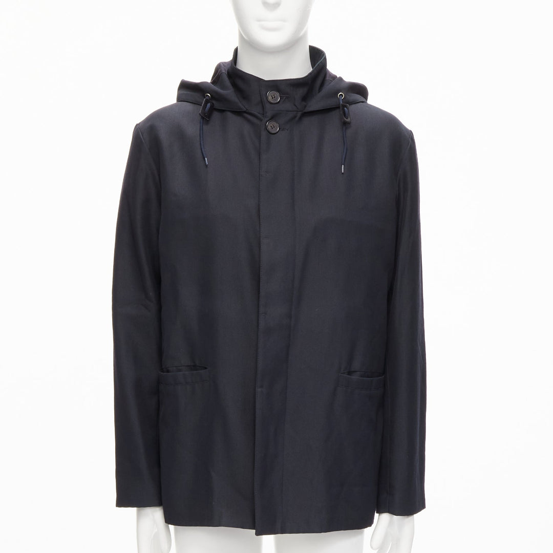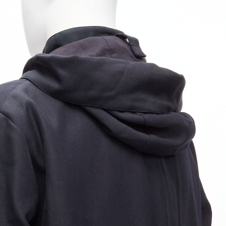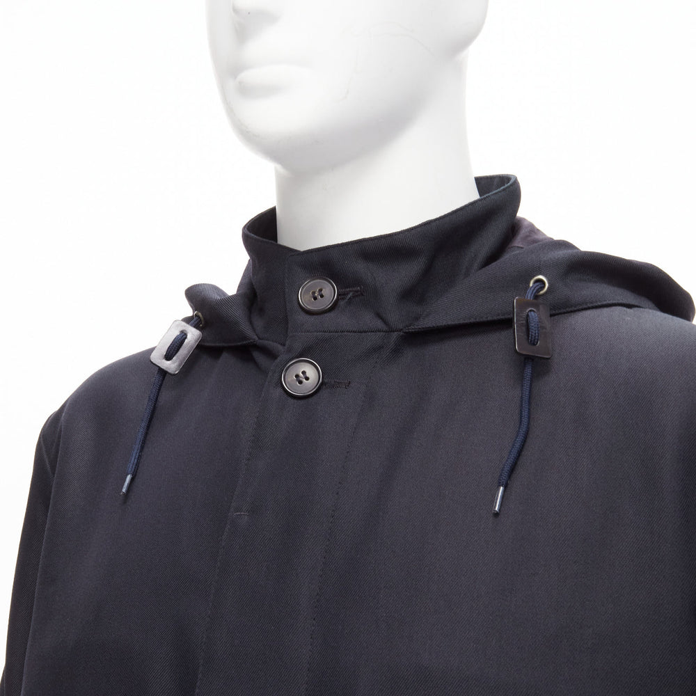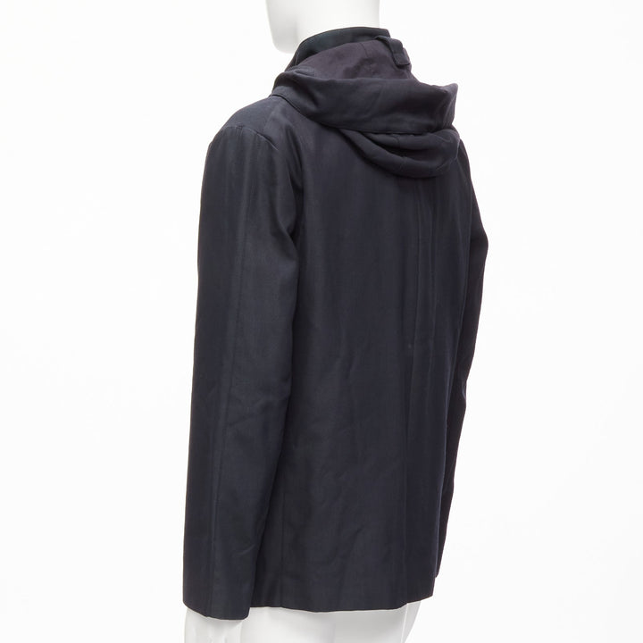 MARNI black wool blend leather stopper hooded concealed buttons parka jacket IT48 M