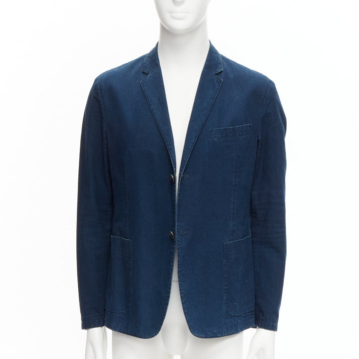 PRADA 2013 dark blue cotton denim minimal single breast blazer jacket IT50 L