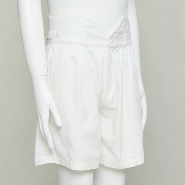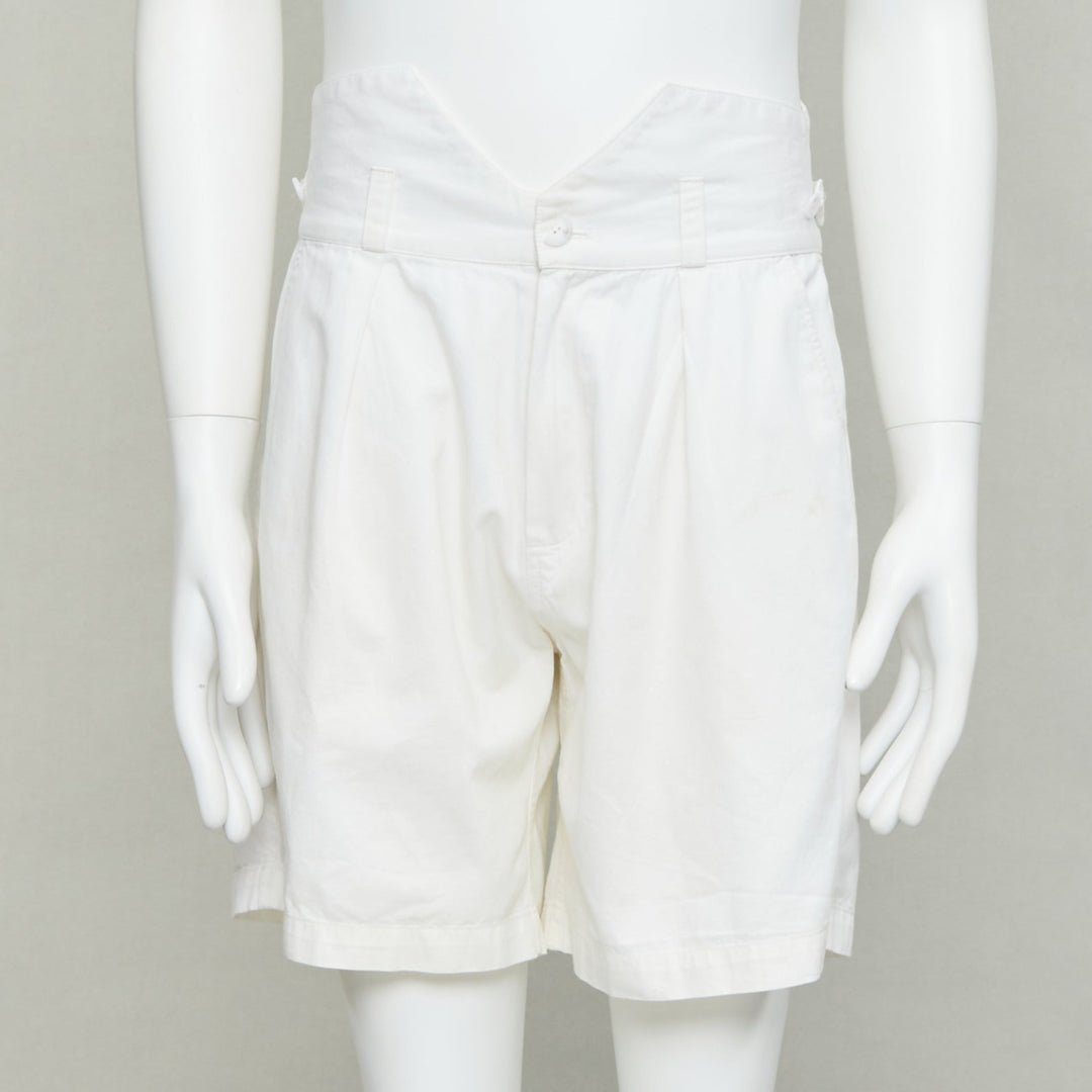 RAF SIMONS 2006 cream cotton high waist pleated front dress shorts EU50 L