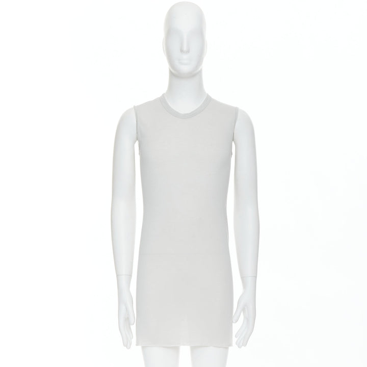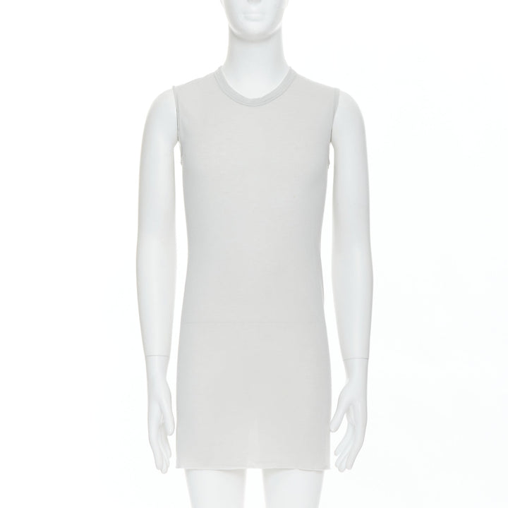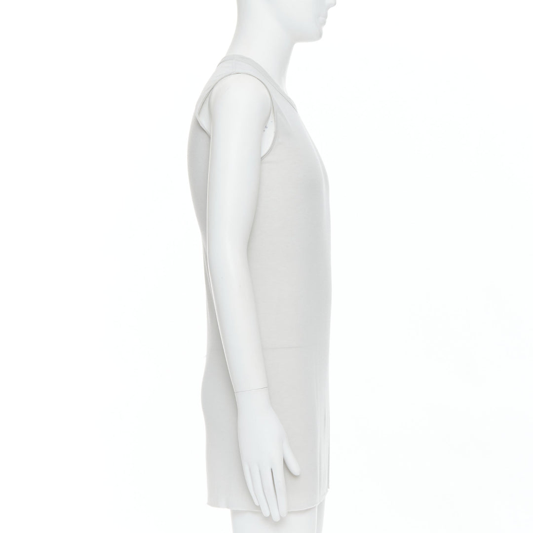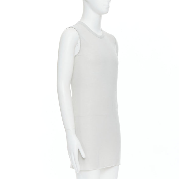 RICK OWENS 2021 Phlegethon Oyster light grey raw edge cut long tank S