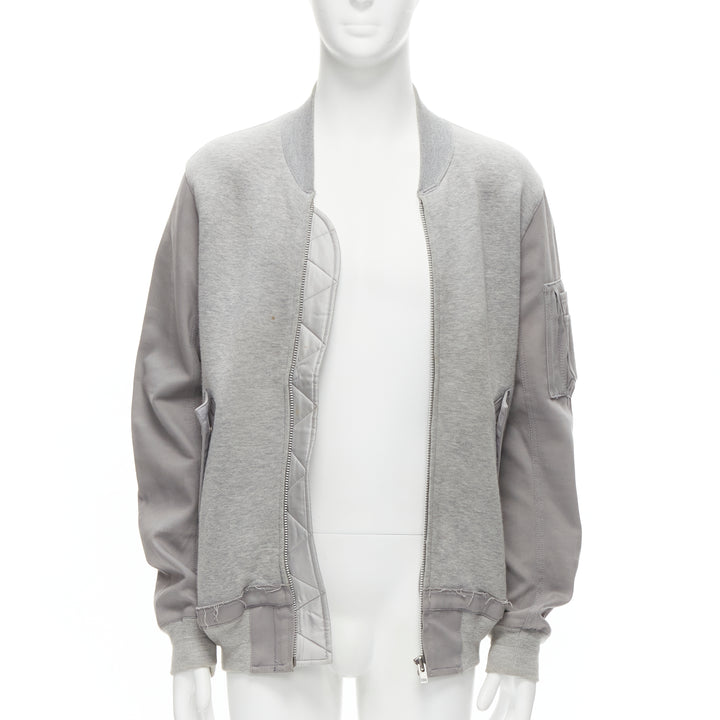 SACAI grey jersey contrast sleeves casual bomber jacket JP2 M