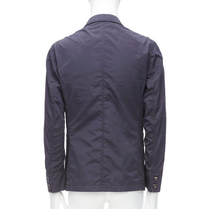 ST DUPONT charcoal grey nylon overstitched silver hardware blazer IT50 L