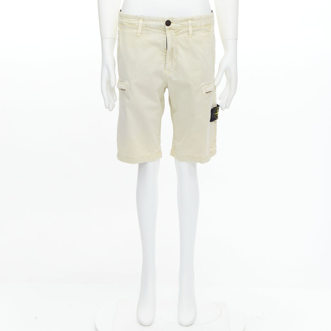 STONE ISLAND 2020 stone washed cotton blend logo patch shorts 30"