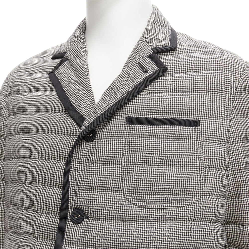 THOM BROWNE black white houndstooth ribbon trim stripe lined padded blazer SZ.3 L