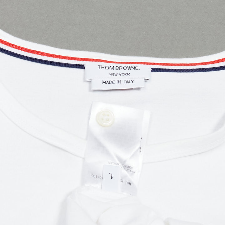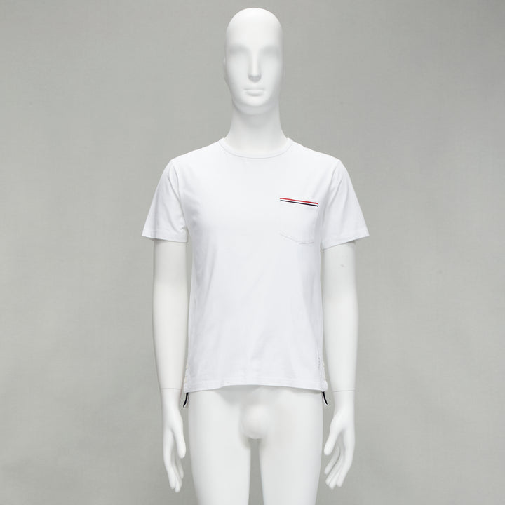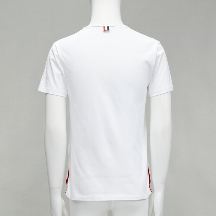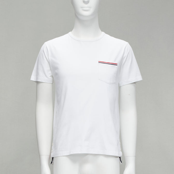 THOM BROWNE iconic stripes patch pocket white cotton tshirt Sz. 1 S