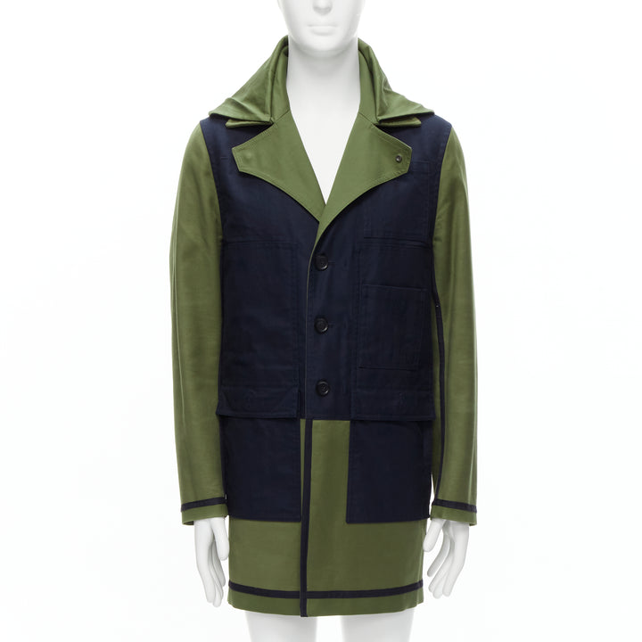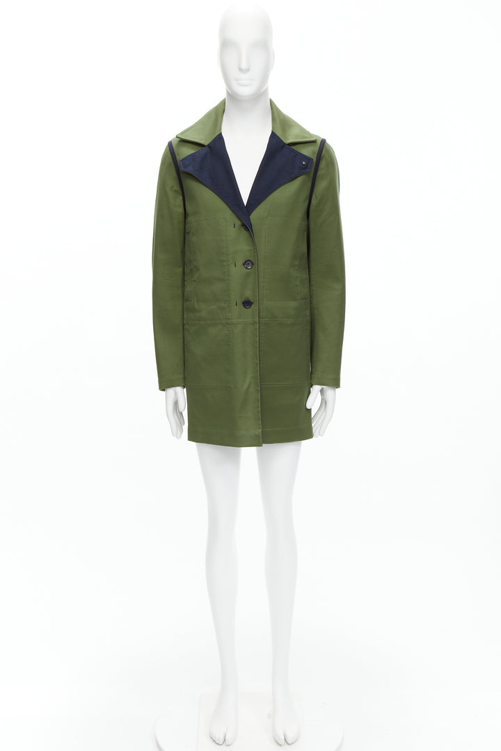 VALENTINO Reversible green navy cotton poplin oversized collar mid coat EU48 M