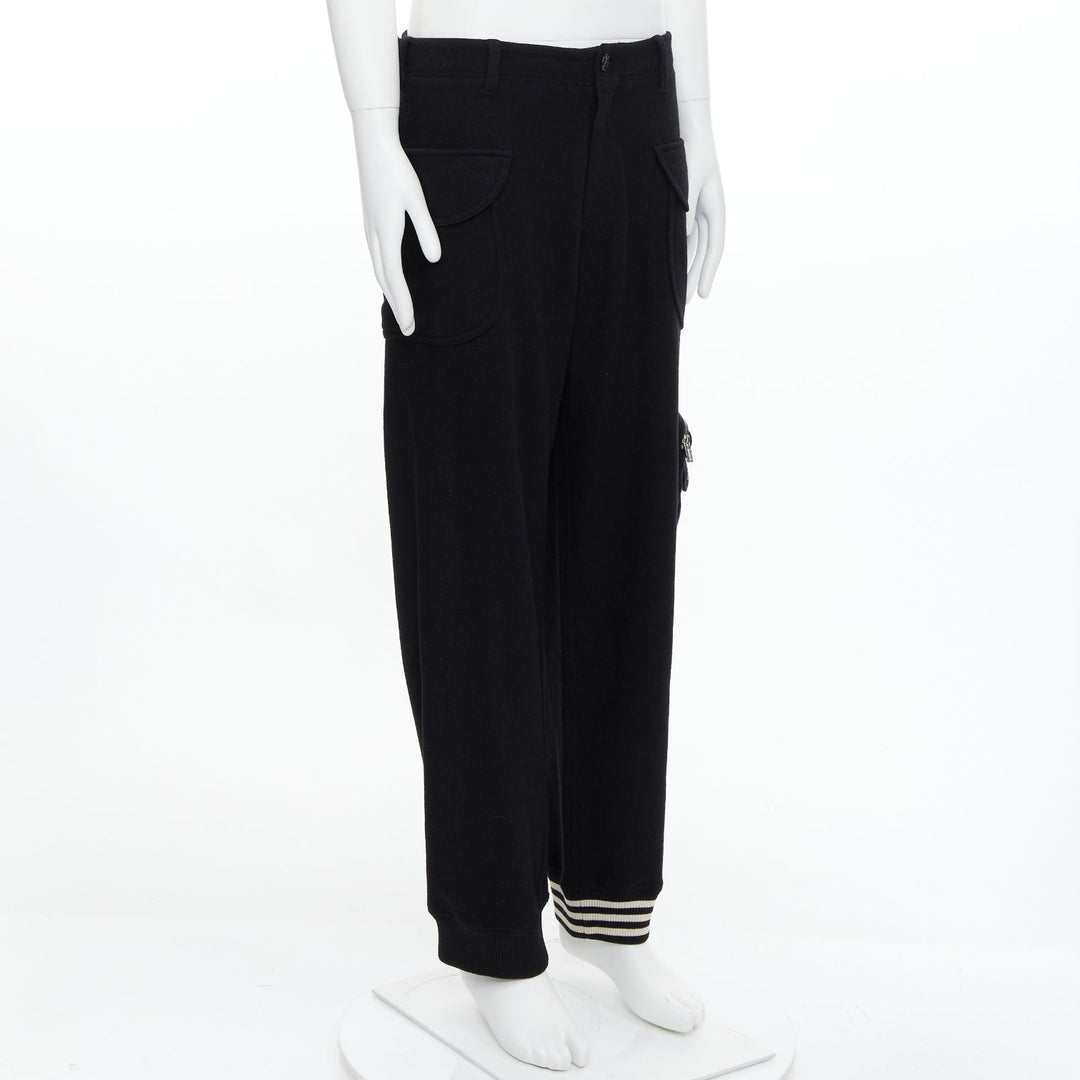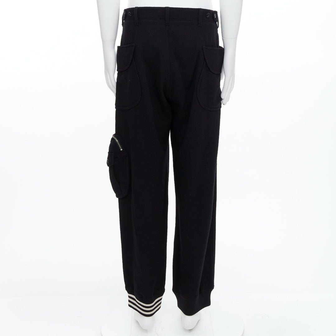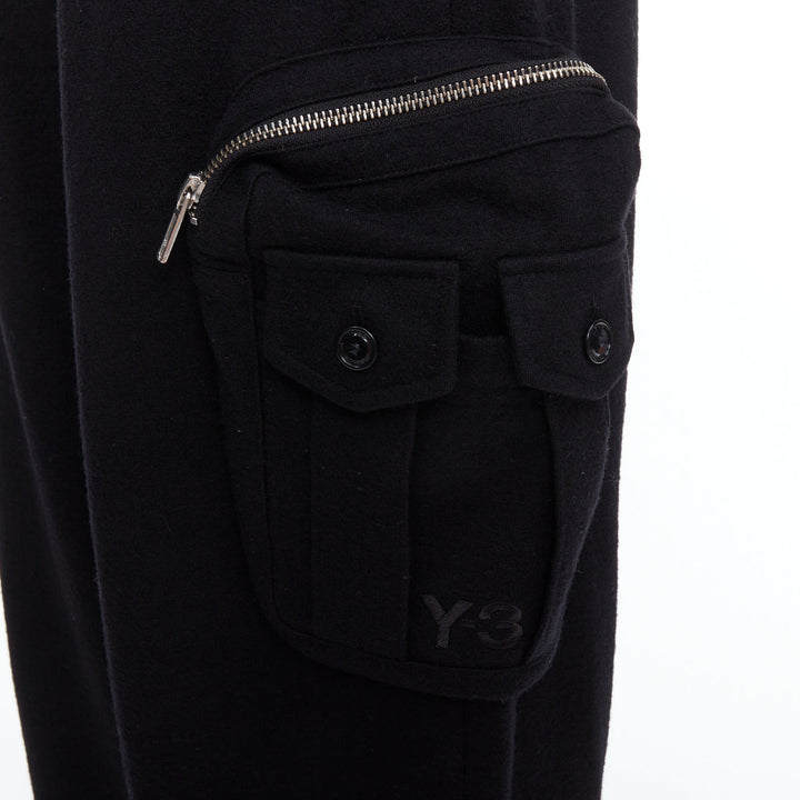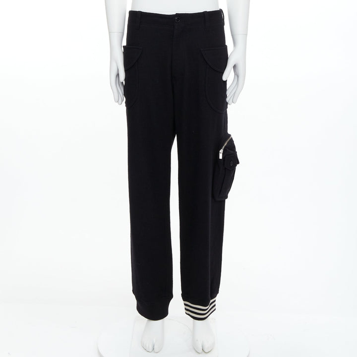 Y3 black wooly silver zip stripes opening asymmetric cargo joggers M