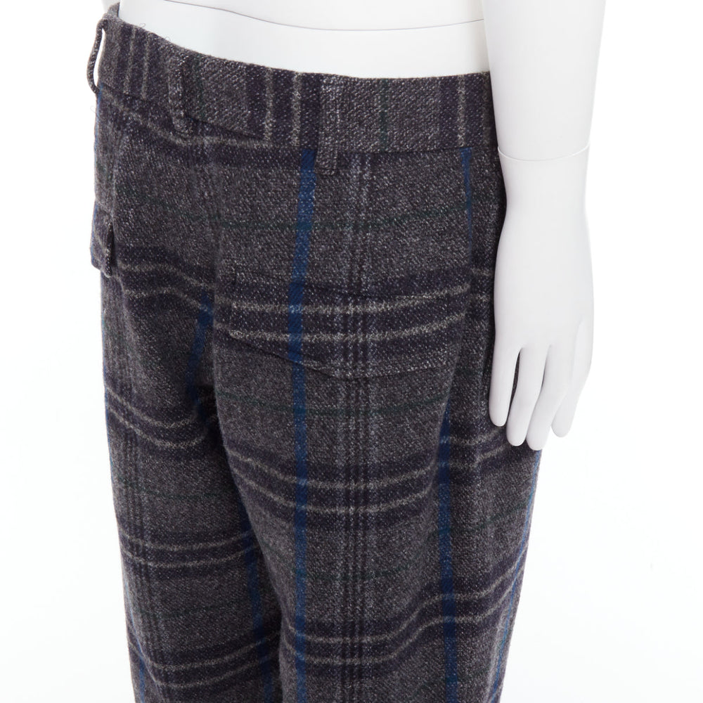 YOHJI YAMAMOTO grey blue 100% wool checkered wide tapered pants JP3 L