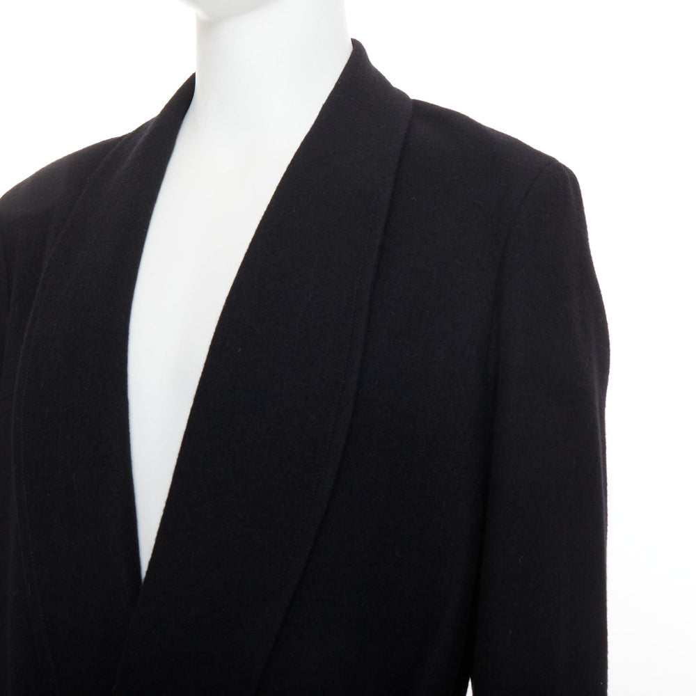 YOHJI YAMAMOTO HOMME black wool felt belted pockets lined robe coat JP2 M