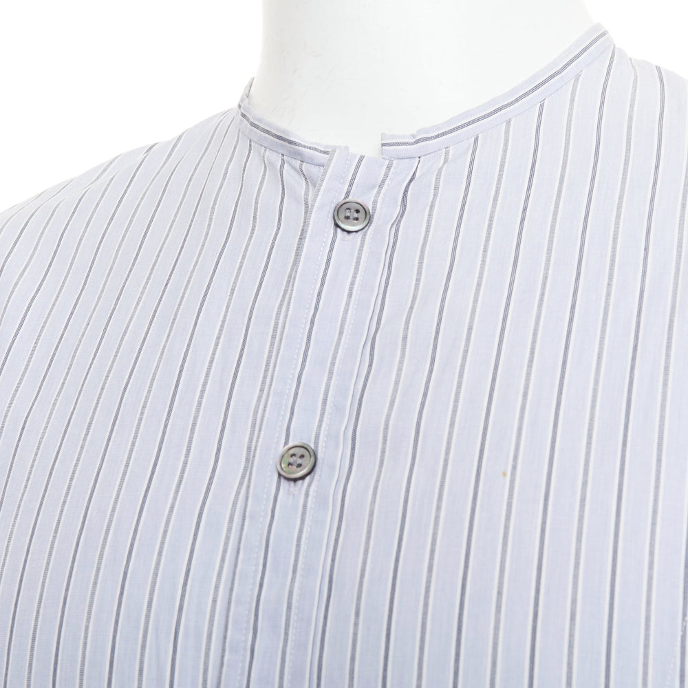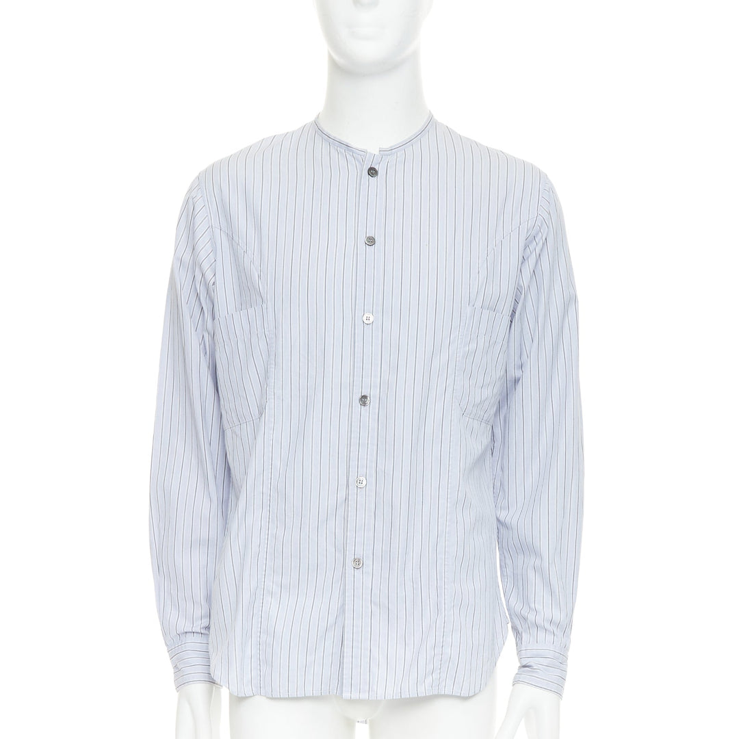 YOHJI YAMAMOTO HOMME light blue grey striped collarless button up shirt JP2 M