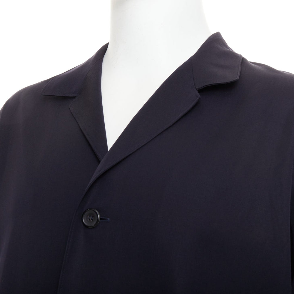 YOHJI YAMAMOTO HOMME navy wool wide cut sleeve boxy cropped blazer M