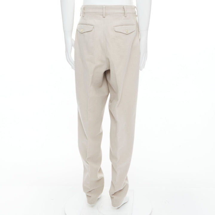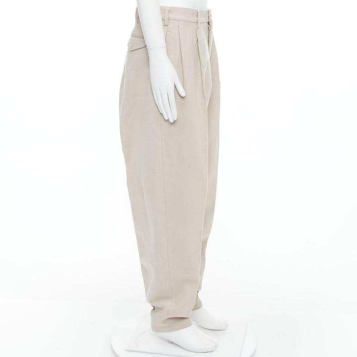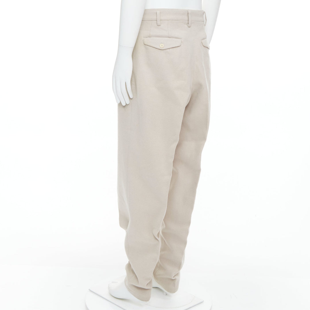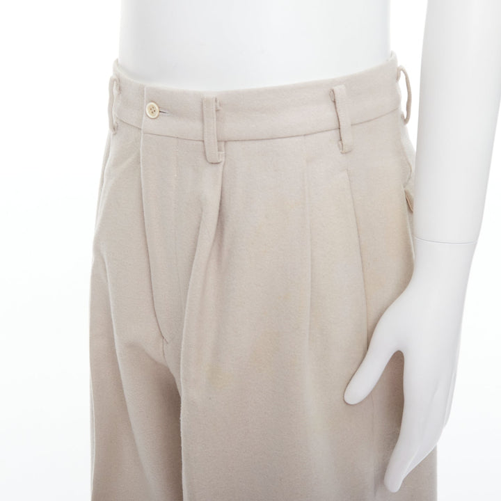 YOHJI YAMAMOTO light beige wool blend tapered 3D pleated pants L
