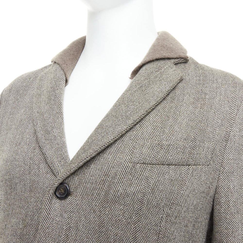YVES SAINT LAURENT brown herringbone cashmere silk layered collar jacket FR48 M