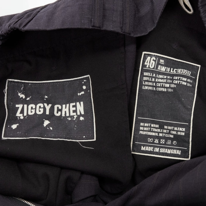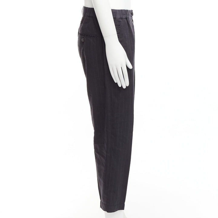 ZIGGY CHEN 2018 grey pinstripes linen ramie cotton tapered cropped pants FR46 S