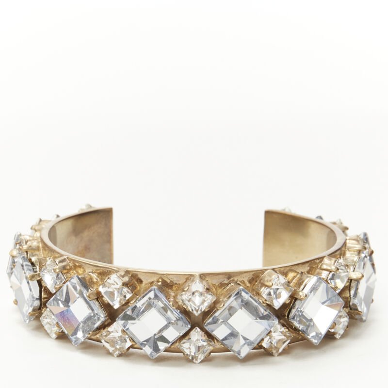 CHRISTIAN DIOR light blue clear square crystal jewel gold-tone cuff bangle M