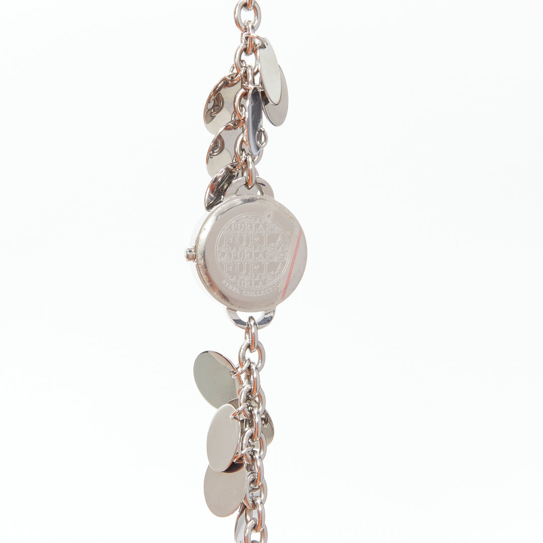 FURLA scribble butterfly logo silver disc chain watch bracelet