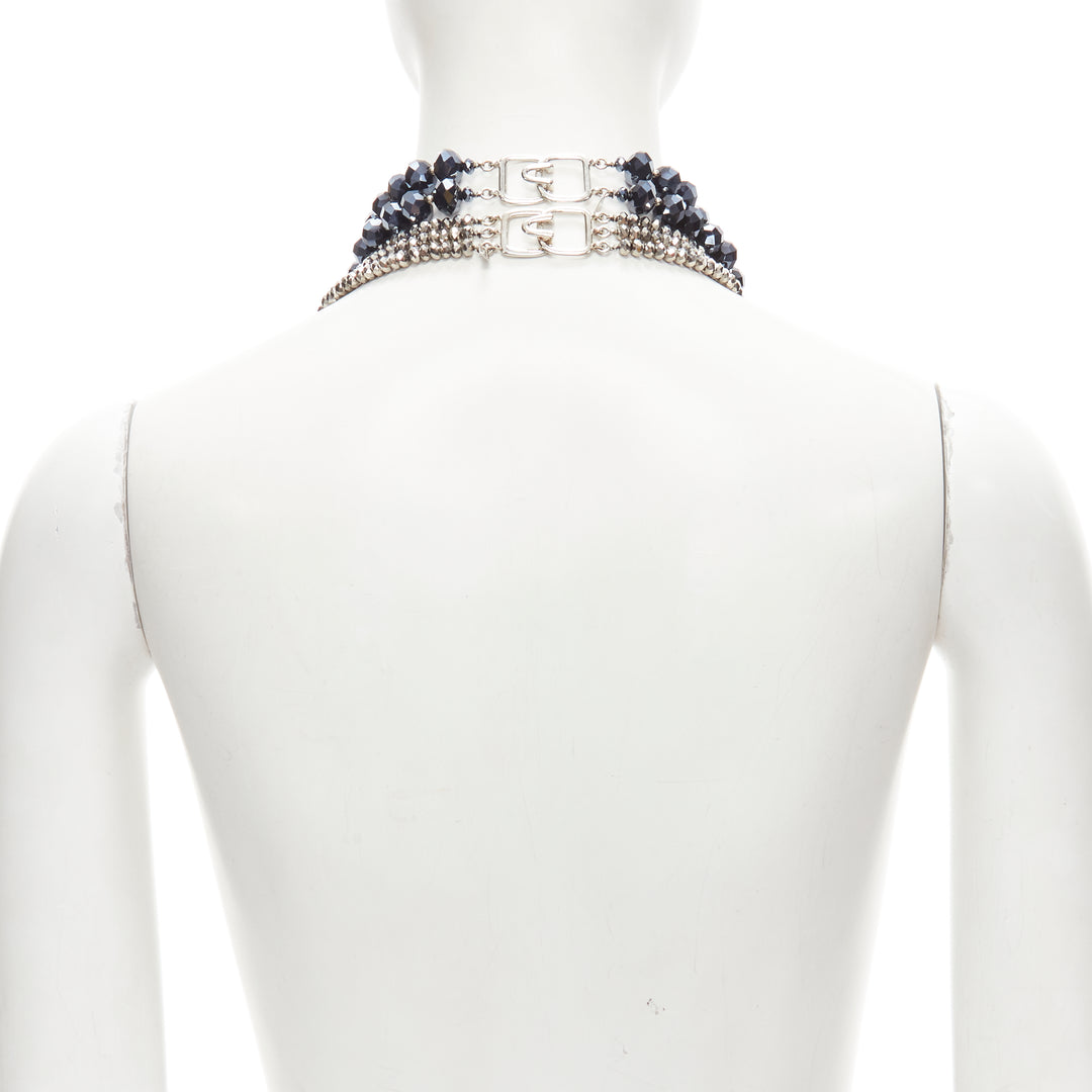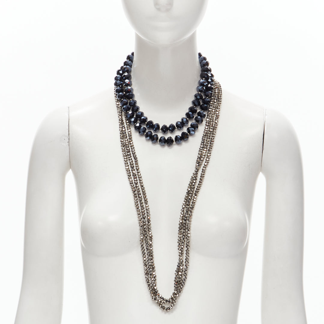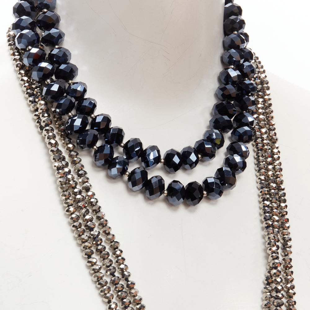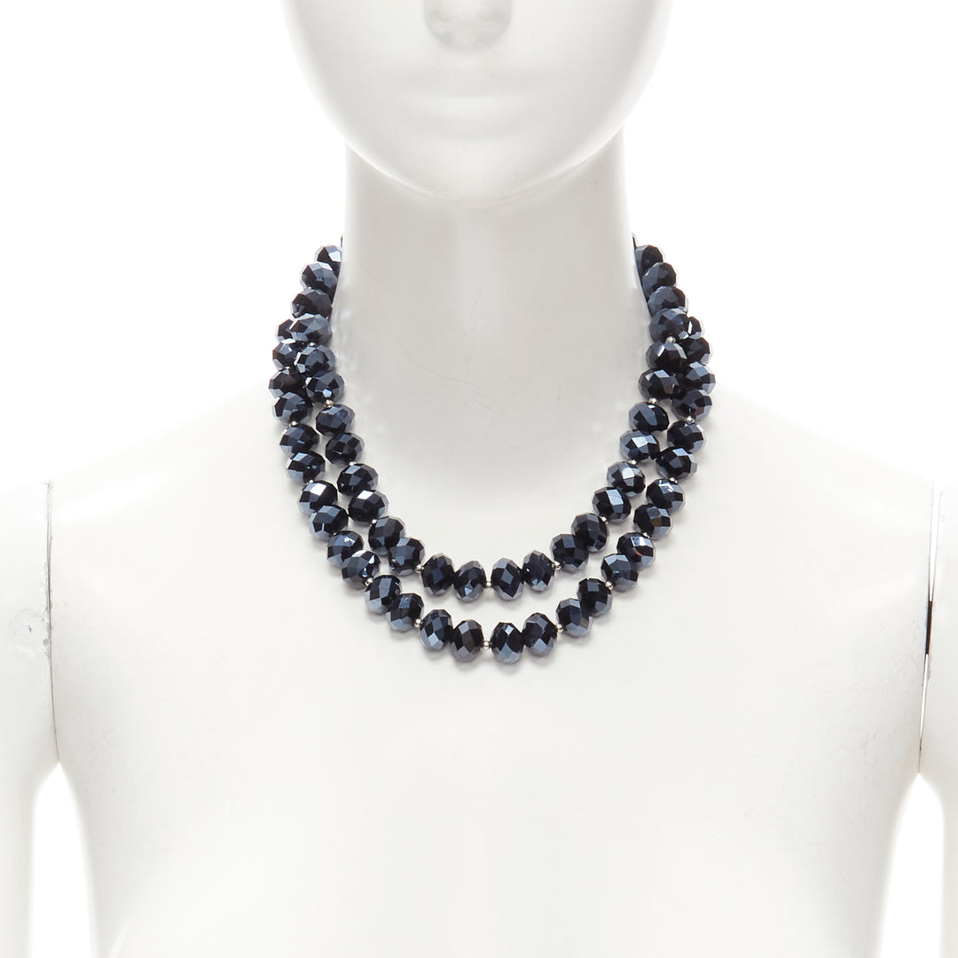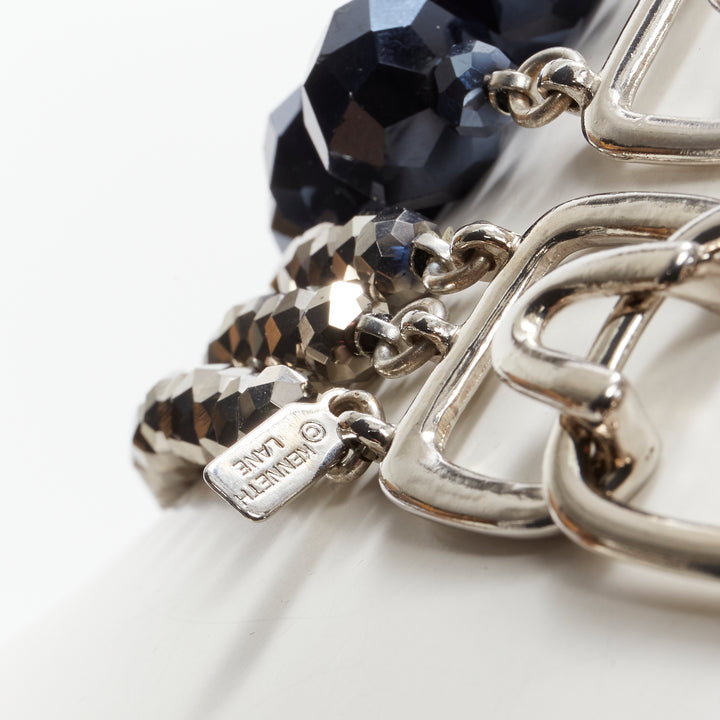 KENNETH JAY LANE silver geometric beads blue big beads double necklace set