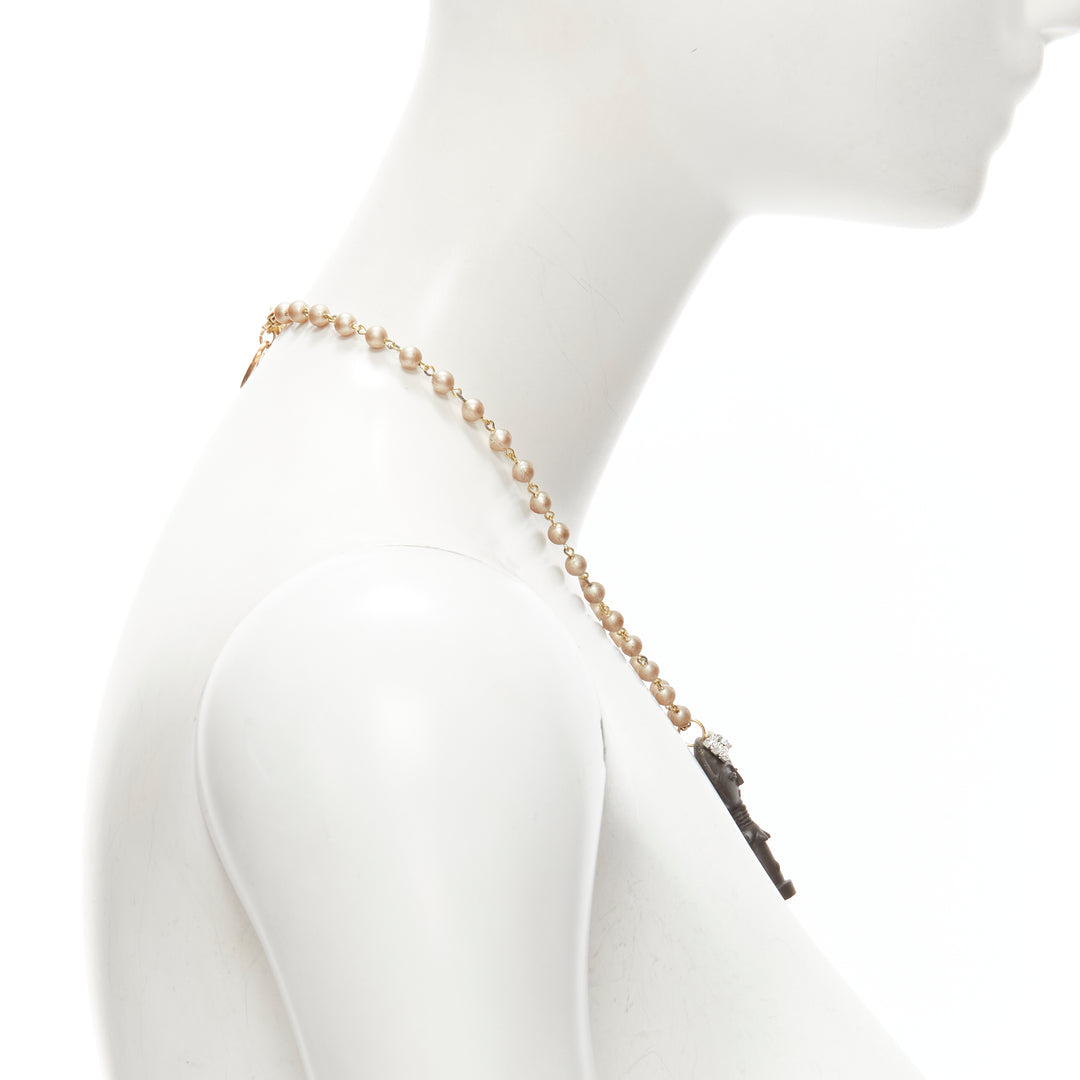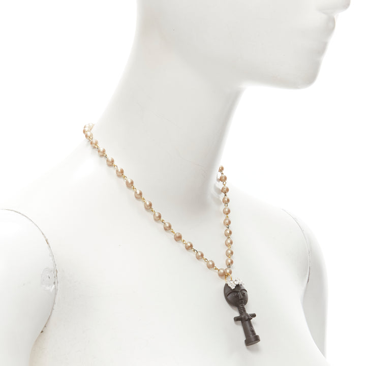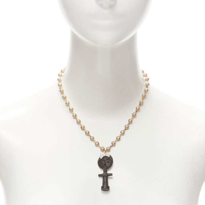 LE BIJOUX DE SOPHIE black crystal aboriginal statue pearl chain necklace