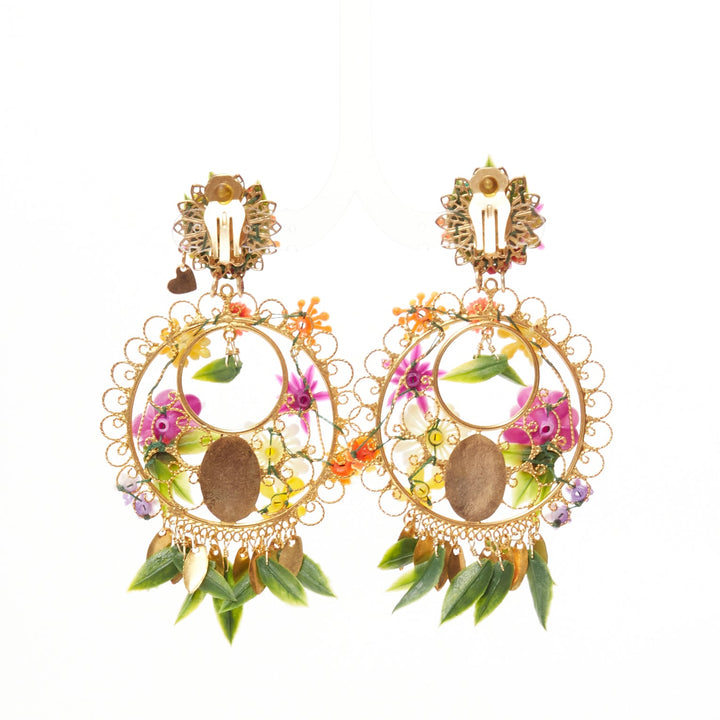 MERCEDES SALAZAR multicolour plastic flower gold rosary clip on earrings